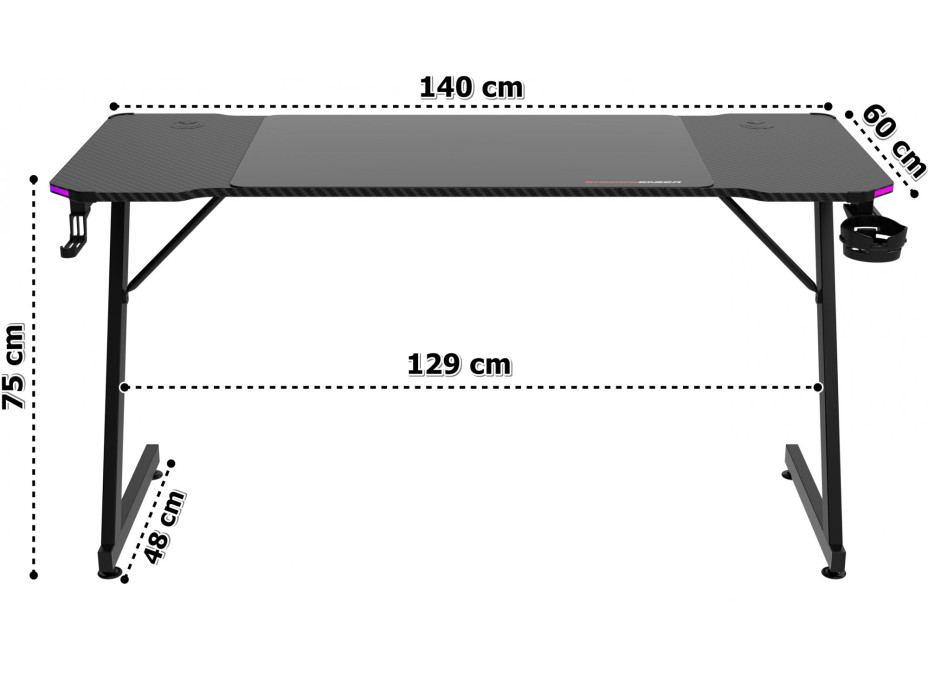 Herní stůl SHADOW GAMER 2.0 140 cm LED RGB