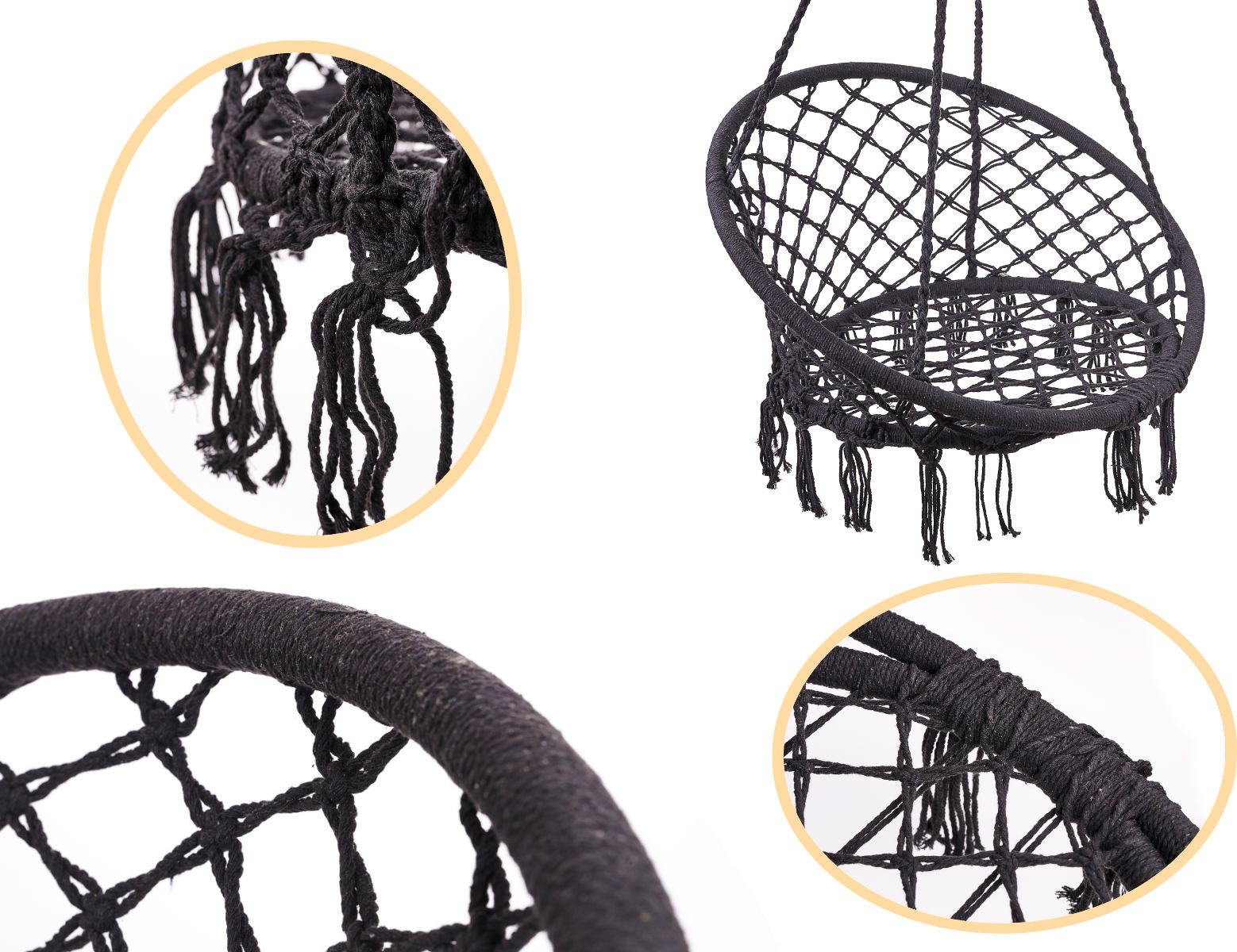 Silná, speciálně tkaná lana a kovový rám zajišťují bezpečnost při relaxaci. Můžete si být jisti, že houpačka vydrží dlouho. Čapí hnízdo je domácí hřiště pro děti a relaxace pro dospělé. Všichni si ji jistě užijí. Velký průměr sedáku zaručuje dostatek prostoru pro relaxaci a hraní. Pohodlné opěradlo a prostorný sedák poskytují výjimečné pohodlí. S touto houpací sítí ve tvaru křesla je relaxace čistým potěšením! Nechte se ovládnout svými sny, uvařte si svůj oblíbený čaj a vezměte si poutavou knihu.