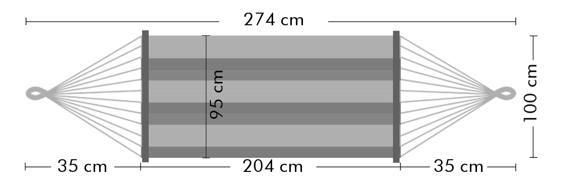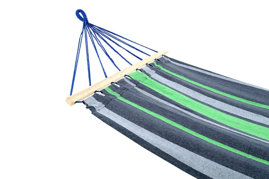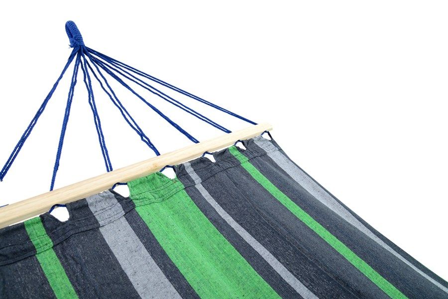 Tato pohodlná houpací síť je vyrobena ze spleteného textilního vlákna, dvou bočnic z tvrdého bukového dřeva a dvou ok na koncích sítě k jednoduchému ale bezpečnému uchycení.