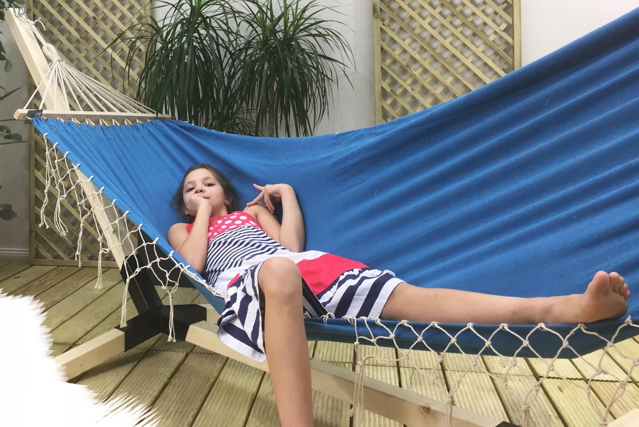 Odpočívejte, relaxujte nebo jen tak lenošte ve kvalitní houpací síti kolekce BALI. Ideální doplněk do každé zahrady či na terasu pro pohodové chvíle plné klidu. Vhodná k zavěšení do nosné konstrukce (není součástí balení) nebo například mezi stromy. Díky okrajovým tyčím z masivního dřeva se houpací síť tak nezavře, ale stále vás příjemně obklopí a bude vás držet. Hamak je velmi skladný a snadno si jej můžete vzít s sebou i na dovolenou.