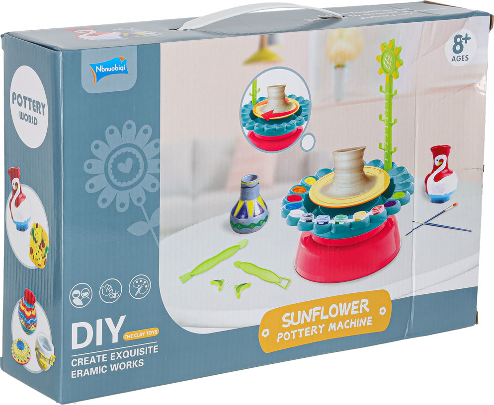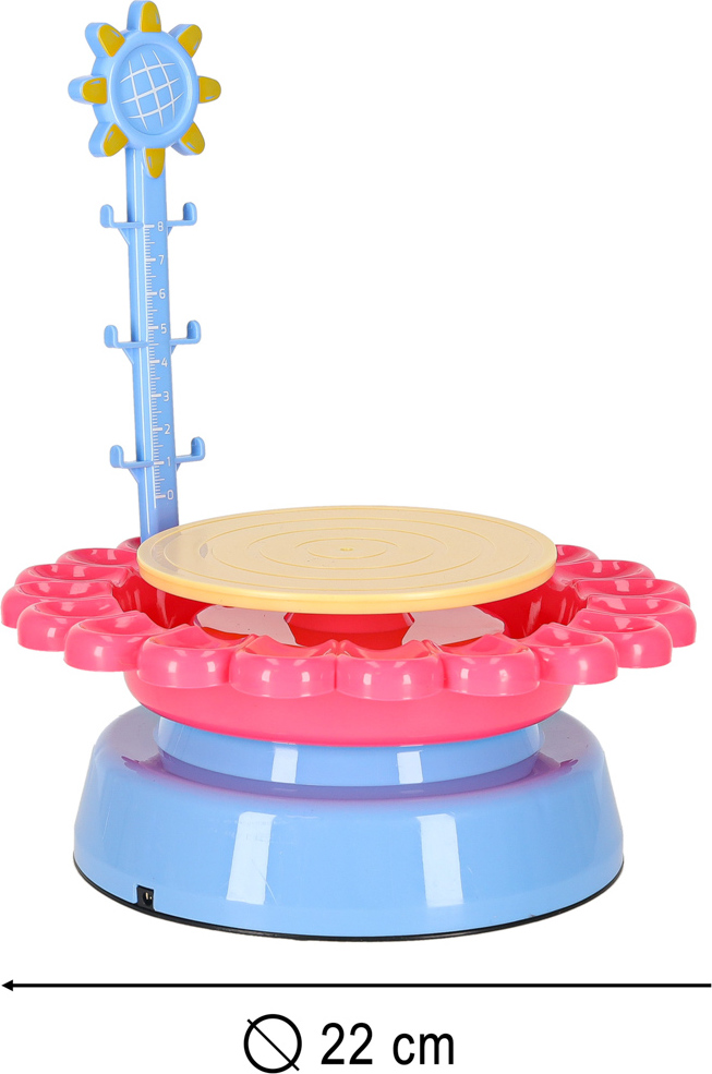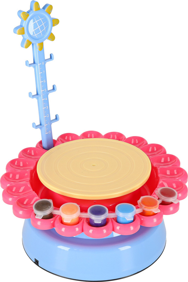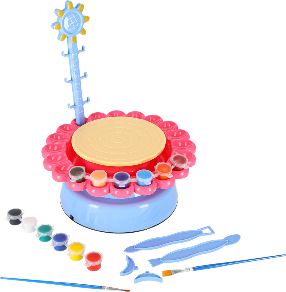 Ideální dárek pro každého malého umělce! Skvělá sada s otáčecím hrnčířským kruhem poskytne spoustu zábavy každému dítěti, které si rádo hraje a tvoří. Díky velkému množství hlíny, které je součástí sady, si s ní užijete spoustu zábavy! Hrnčířský kruh se může otáčet dvěma různými rychlostmi, takže je ideální pro začátečníky a děti s určitými zkušenostmi! Praktická zástěra, která je součástí sady, vám umožní hrát si bez obav z poškození oblečení! Váš malý umělec bude moci bez omezení vytvářet vázy, květináče, hrnky, šálky a mnoho dalších předmětů, a to vše díky pečlivě vybraným speciálním nástrojům na tvarování hlíny! Vaše dítě bude nejen schopno vytvářet krásné nádoby, ale také je krásně zdobit díky přiloženým štětcům a barvám ve 12 různých barvách!