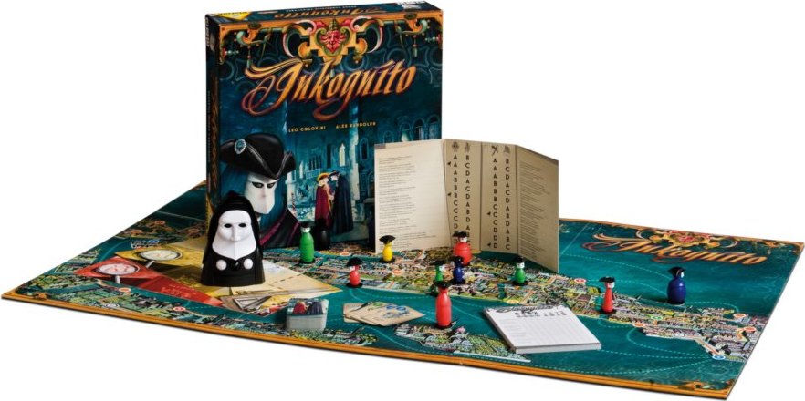 Při karnevalu v Benátkách vklouzni do role tajného agenta nebo Ambassadora a maskován se ponoř do pestrého karnevalového dění. Posbírej informace o svých spoluhráčích. Vypozoruj, kdo je tvým skutečným partnerem a kdo tě chce svést na falešnou stopu. Jen společně s tvým partnerem se ti podaří dešifrovat tajné poselství a úspěšně splnit společnou misi. Cílem každého agenta je ve spolupráci se svým partnerem splnit zadanou misi. Svou misi však hráči na začátku hry neznají. V klasické hře 4 hráčů každý hráč pohybuje jedním ze čtyř tajných agentů. Agenti vytvářejí tyto spojenecké dvojice: Lord Fiddlebottom a Plukovník Bubble jsou vždy proti Agentovi X a Madam Zsa Zsa. Každého agenta zosobňuje jedna ze čtyř figurek, lišících se konstituci: vysoká, nízká, tlustá nebo štíhlá. Pouze jedna z nich ale představuje skutečnou postavu, za kterou daný hráč hraje. Ostatní tři figurky představuji špiony ‒ spolupracovníky, kteří se snaží zmást protivníky. Hráč, který je na tahu, zatřese Fantomem osudu a ten mu odhalí tři dostupné akce. Akcí může byt pohyb po zemi nebo po moři. Hráč pohne svými figurkami, a snaží se je přemístit na políčka, kde už stoji Ambasador nebo figurky jiných hráčů. Když hráč přesune figurky tak, že se jeho figurka ocitne na jednom políčku s figurkou jiného hráče, má právo „klást otázky“ a prohlédnout si některé karty druhého hráče. Pomoci dedukce a logického uvažování může odhadovat identitu a úmysly ostatních hráčů a některé možnosti eliminovat. Prvním cílem každého agenta je zjistit, kdo je jeho partnerem. Tento partner má druhou polovinu „kódu“, který naznačuje jejich tajnou misi. Když agent odhalí (nebo si myslí, že odhalil) skutečnou identitu ostatních hráčů, musí si se svým spojencem vyměnit karty s tajnou misí. Tak poznají svou společnou misi, a jak ji mohou splnit. Pokud libovolný agent z týmu misi splní, vyhrávají společně jako tým. Ve hře je ještě jedna postava, která má důležitou úlohu, a to je Ambassador. Ambassador vám může poskytnout přesnější informace o ostatních postavách. Protože je velmi dobře informován a může byt velmi nápomocný, kromě vás ho budou chtít potkat i vaši rivalové; snažte se ho proto udržet mimo jejich dosah. Hrací doba: 60 minut a více Hra obsahuje: 1 hrací desku, 16 figurek, 1 figurku Ambassadora, 1 Fantoma osudu, 4 pasy, 1 poznámkový blok, 44 karet (4 barevné sady po 8 kartách a 12 tajných karet) a pravidla hryVlastnosti
