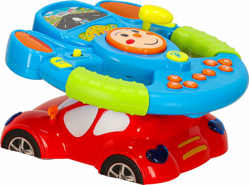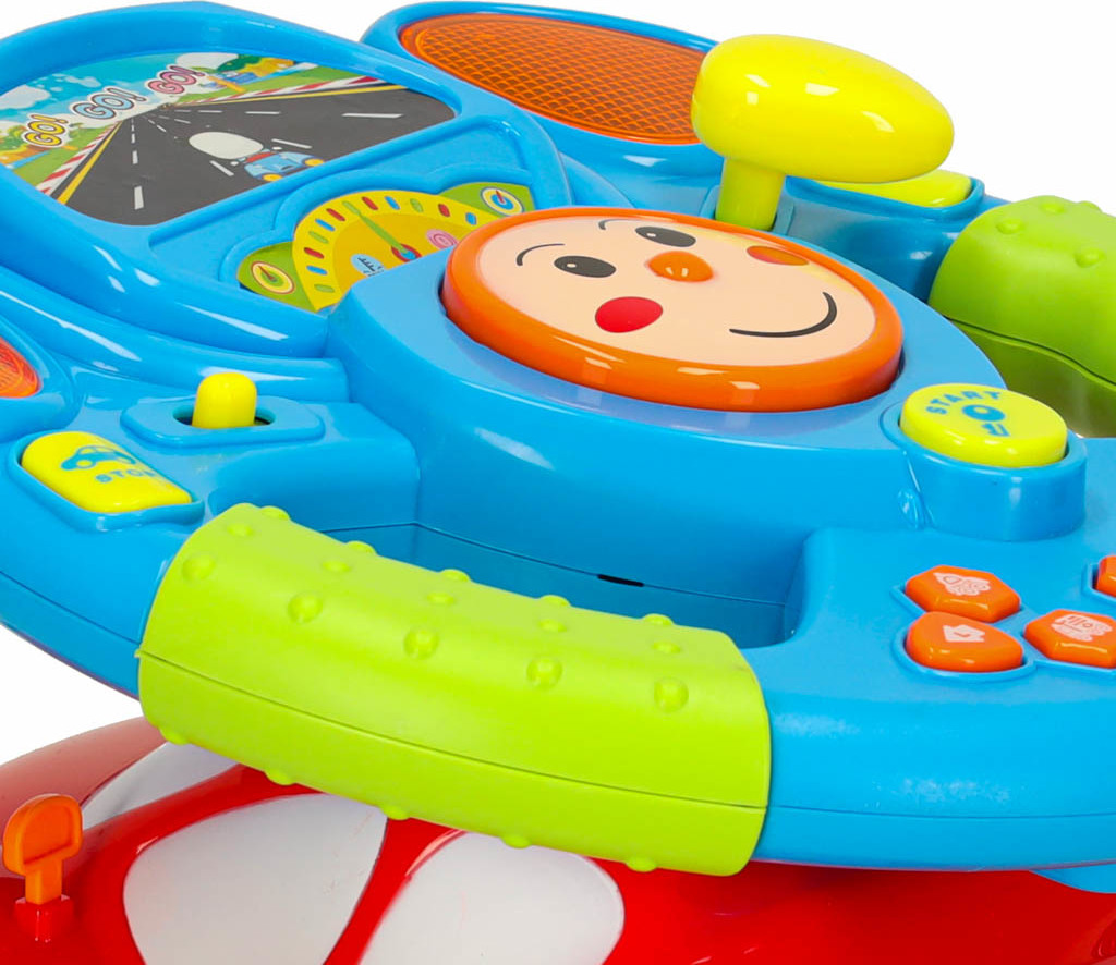 Tento interaktivní volant pro děti nabízí při hraní na řidiče nepřeberné množství zvuků a melodií. Každé tlačítko vydává realistické zvuky, například sirény sanitek a policejních aut, zvuky vlaků a nákladních aut a zvuky řazení a brzdění.