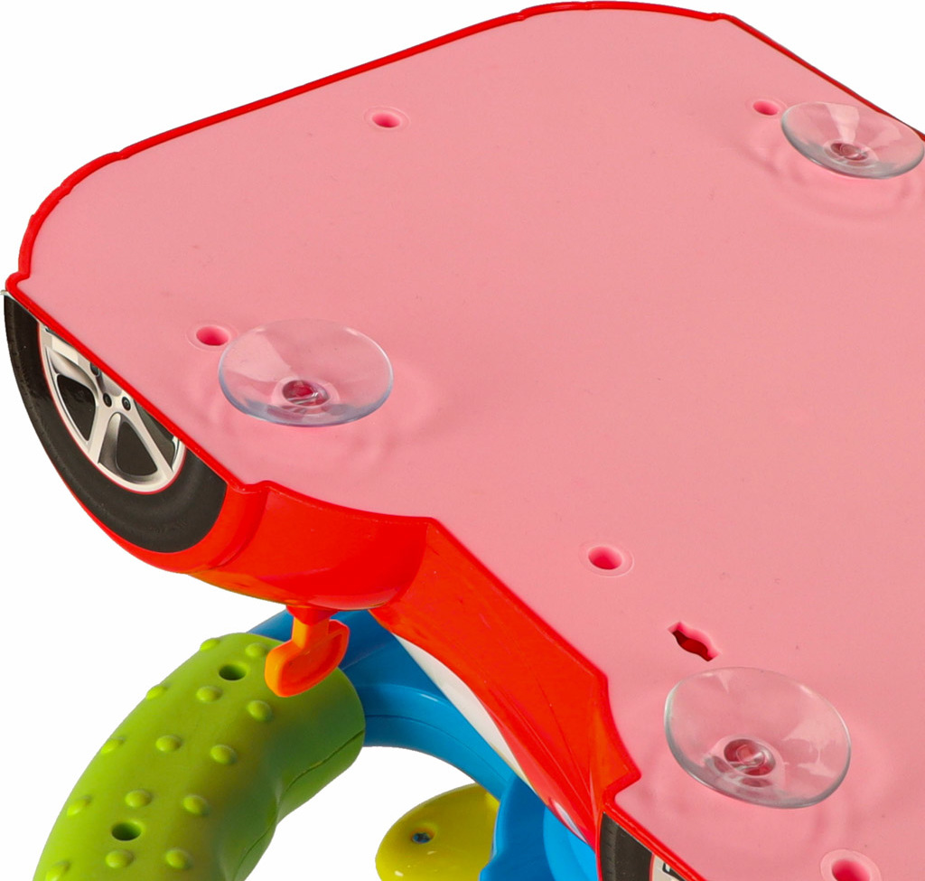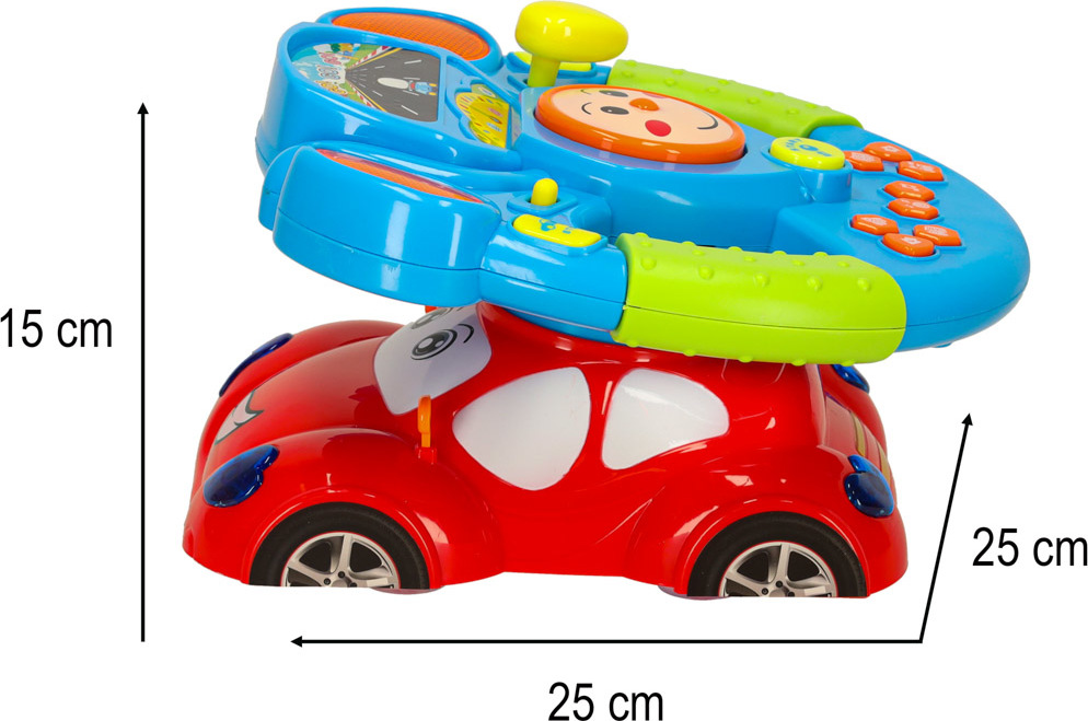 Volant je namontován na červeném autě s vestavěným projektorem, který zobrazuje silnici a dále stimuluje dětskou fantazii. Hračka má dvoustupňové ovládání hlasitosti a přísavky na spodní straně pro připevnění k různým povrchům. Je napájena třemi AA bateriemi (nejsou součástí balení). Podporuje rozvoj jemné motoriky a sluchového vnímání dětí.