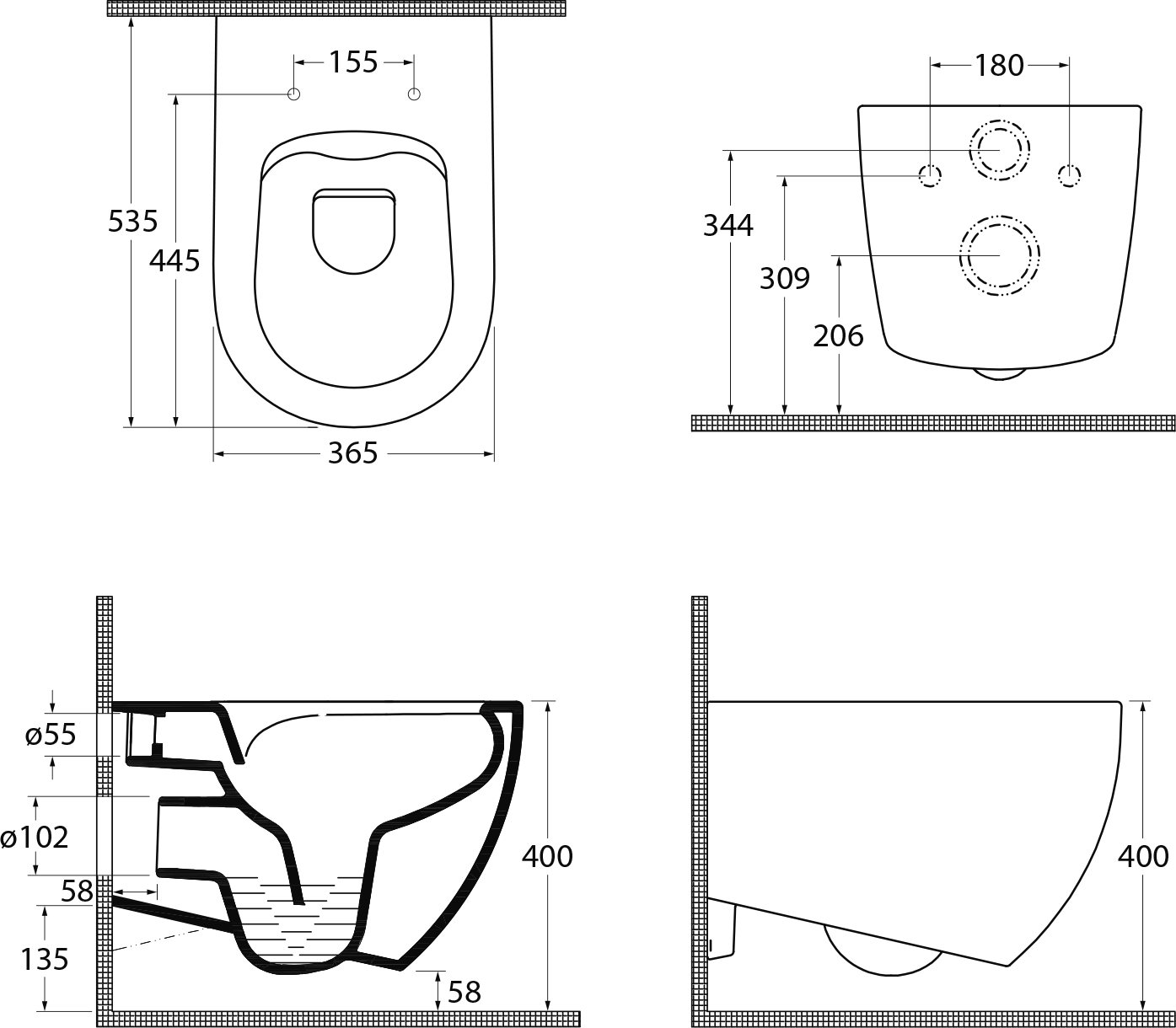 Rimless (NoRim) – toalety bez tradičního oplachového kruhu. Hladký povrch bez dutin a záhybů. Oplachová voda vytéká rozdělovačem vody pouze ze zadní části WC mísy a díky speciálnímu tvaru keramiky dokonale opláchne vnitřní prostor. Výhodou je snadná údržba a čištění WC mísy.