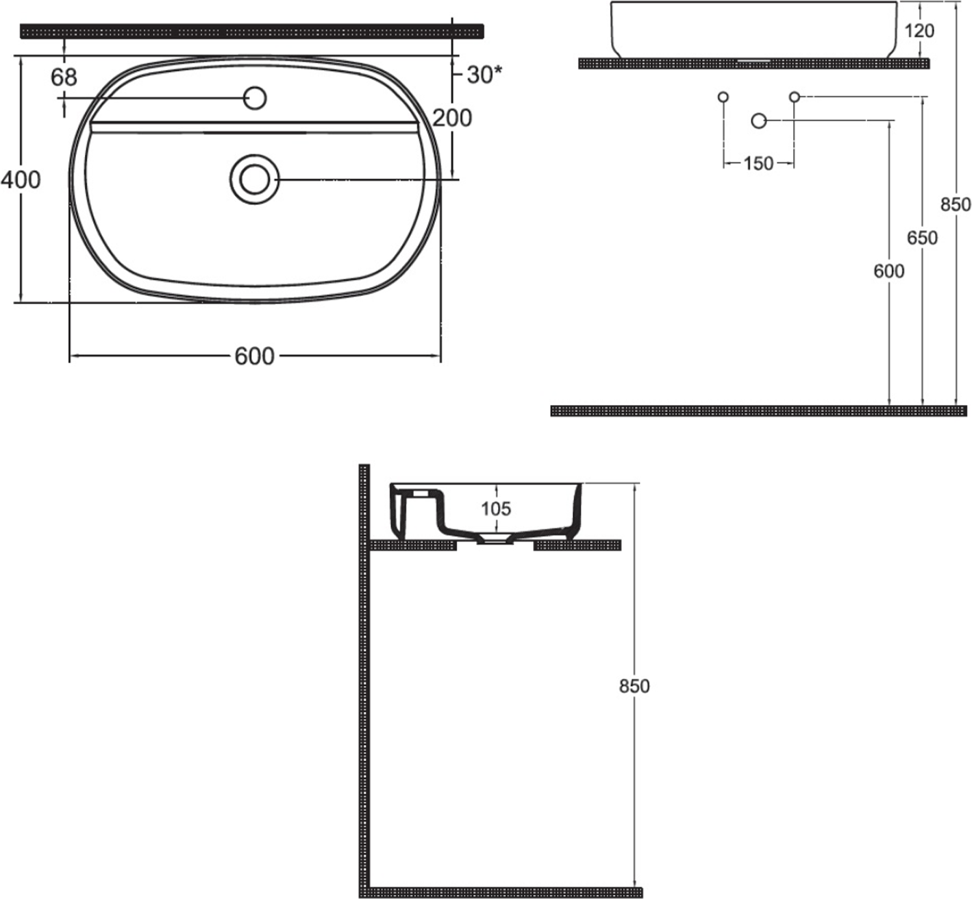 - Montáž umyvadla: Na desku