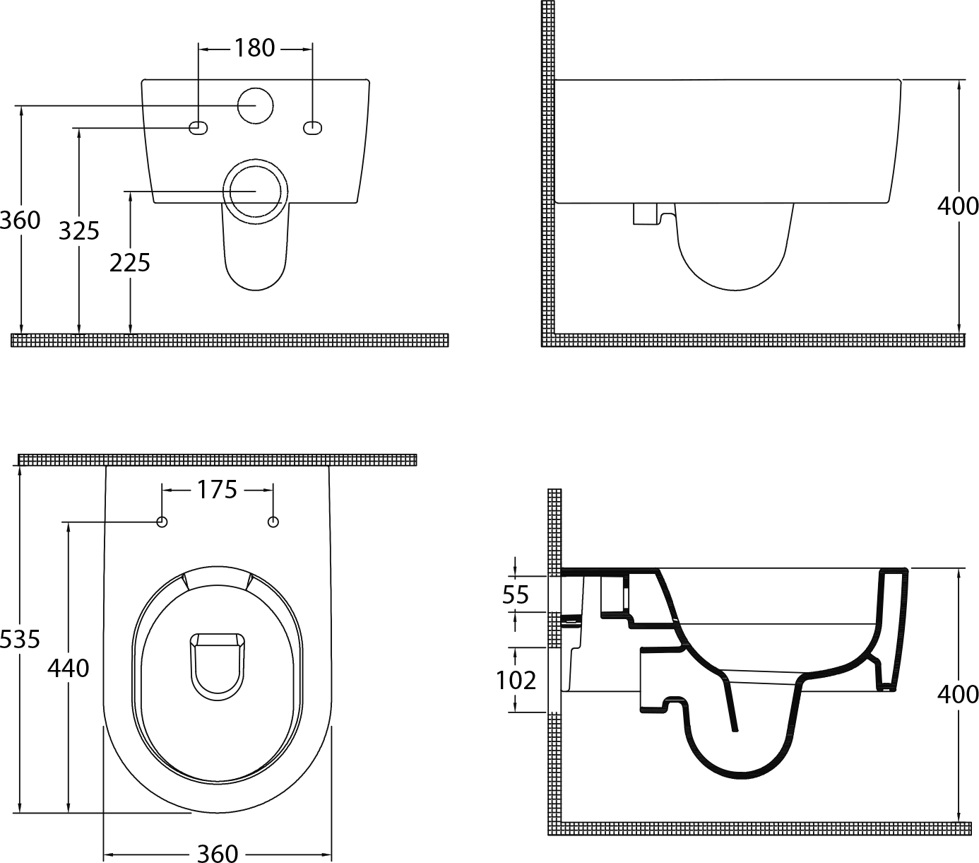 Rimless (NoRim) – toalety bez tradičního oplachového kruhu. Hladký povrch bez dutin a záhybů. Oplachová voda vytéká rozdělovačem vody pouze ze zadní části WC mísy a díky speciálnímu tvaru keramiky dokonale opláchne vnitřní prostor. Výhodou je snadná údržba a čištění WC mísy.