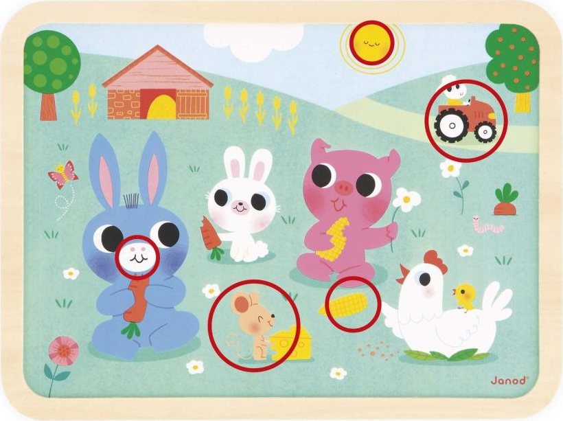 JANOD Dřevěné puzzle s hledáním rozdílů Farma 24 dílků