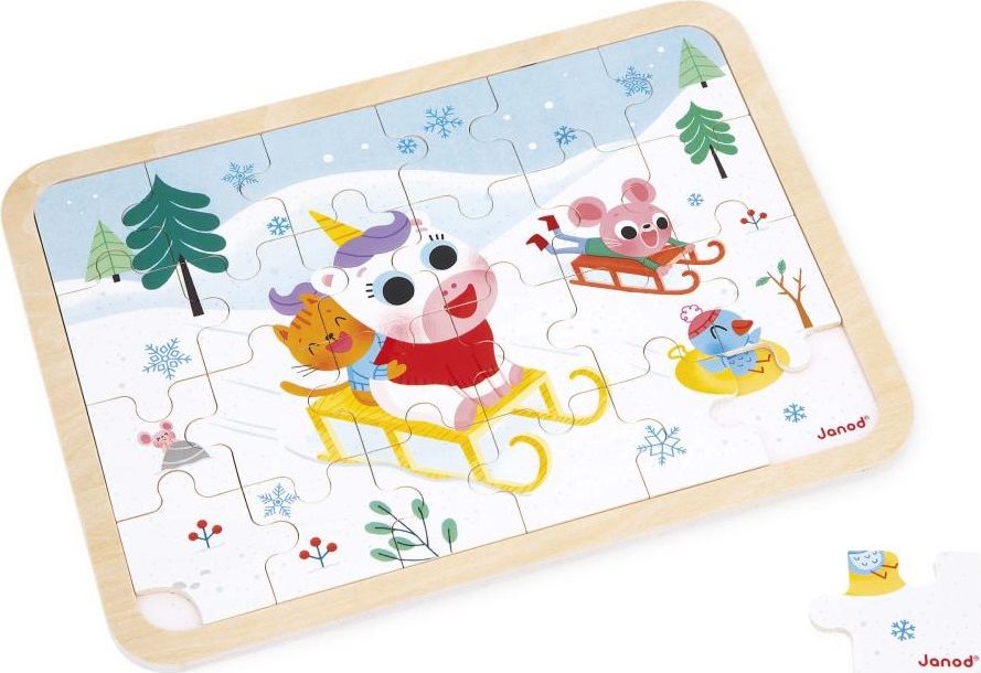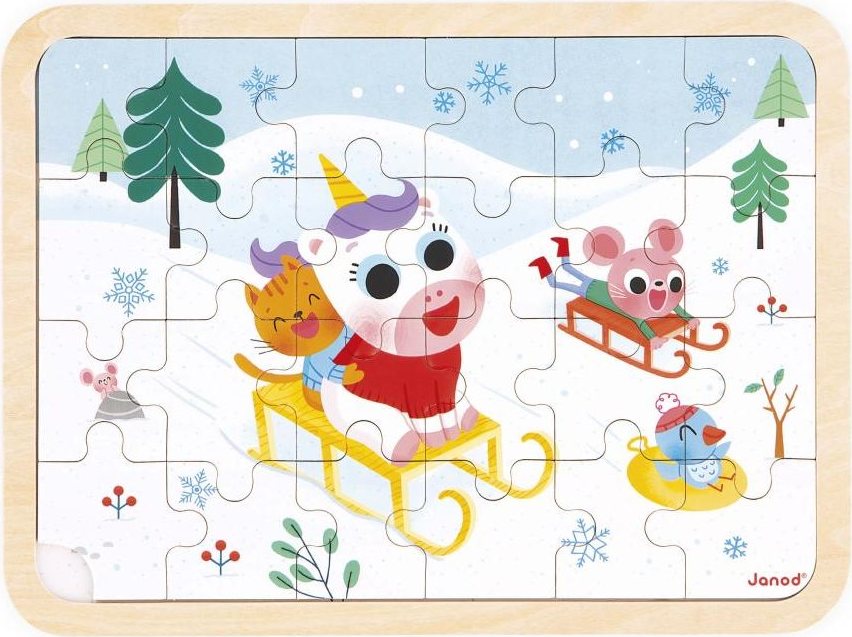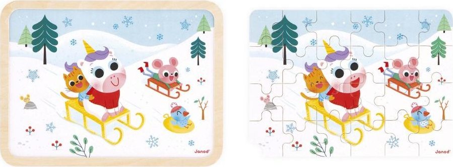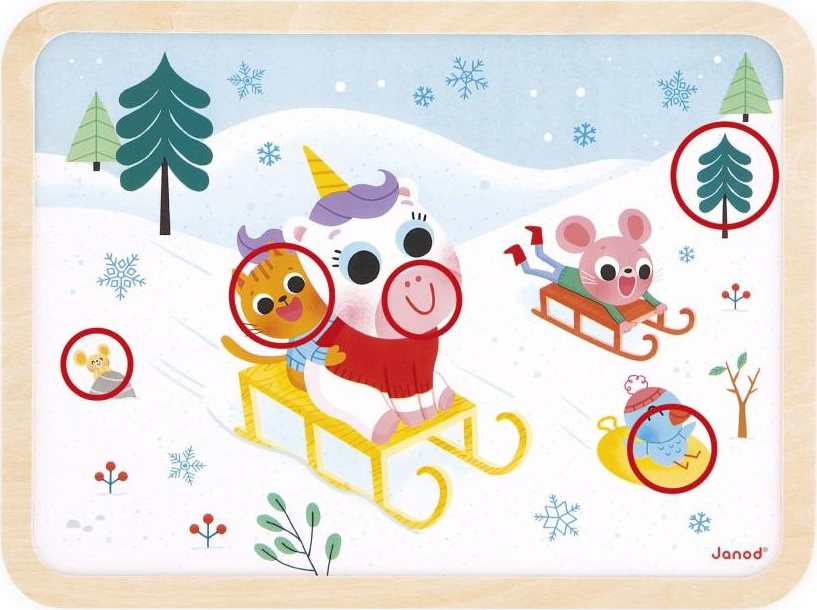 JANOD Dřevěné puzzle s hledáním rozdílů Sáňkování 24 dílků