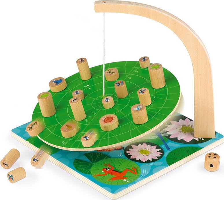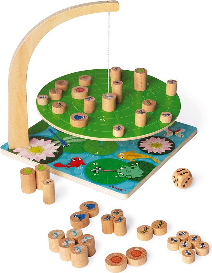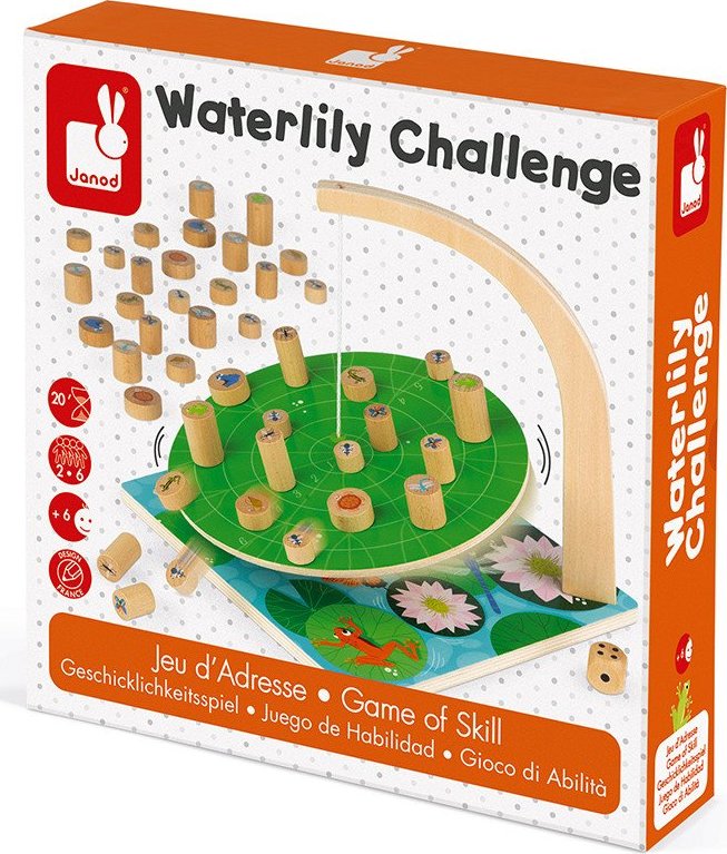 Komu vydrží zvířátka na leknínu co nejdéle? Leknín je společenská hra na zdokonalení dovedností a jemné motoriky. Abyste přežili v rybníku, musíte postupovat zručně a strategicky! Umístěte figurky se zvířátky na leknín tak, aby se nepřevrhl. Cílem hry je, aby zvířátka nespadly z leknínu. Balení obsahuje dřevěnou základní desku se závěsným leknínem, 42 ks dřevěných hracích figurek se zvířátky a 1 dřevěnou hrací kostku. Skutečnost, že deska není zcela rovná, nemá žádný vliv na hratelnost výrobku. Malý tip: Čím opatrněji umístíte figurku zvířátka, tím méně rozhýbete leknín. Hra rozvíjí: - zručnost a jemnou motoriku - strategické myšlení - soustředěnost Vhodné pro děti od 6 let.Vlastnosti