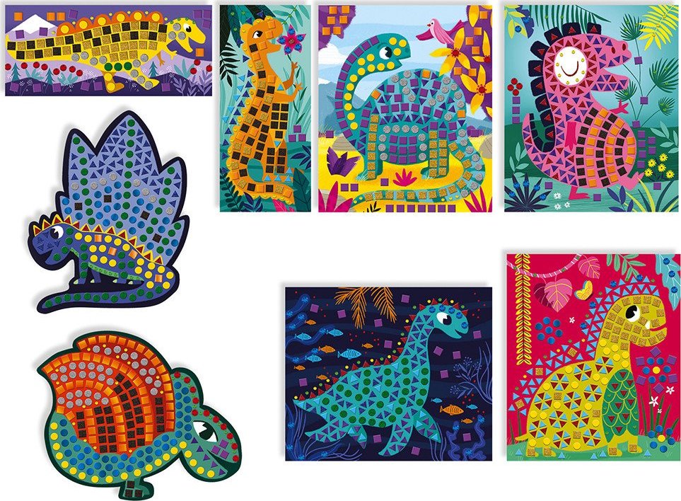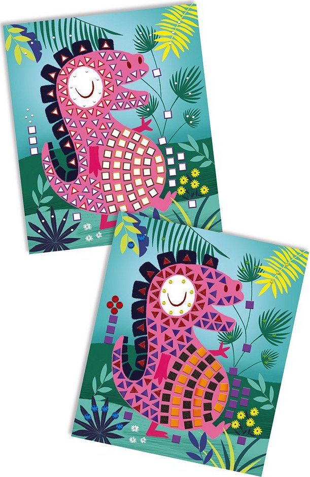 Mozaika pro milovníky dínosaurů. Krásná mozaika s pestrobarevnými obrázky obsahuje 12 listů s třpytivými a barevnými mozaikovými nálepkami. Mozaika podporuje hmatový rozvoj dítěte. V balení je 8 obrázků s dinosaury (rozměry 25 x 21 cm). Vhodné pro děti od 4 let. Sada Janod Atelier na tvoření a podporu dovednosti a představivosti u dětí. Kreativní hračky pro děti nezabírají mnoho místa, jsou vhodné na cesty i na doma, ve zdraví i nemoci a zabaví děti na dlouhé hodiny. Tvoření různými technikami podporuje soustředění a koncentraci, přirozené zkoumání a výtvarné schopnosti.Vlastnosti