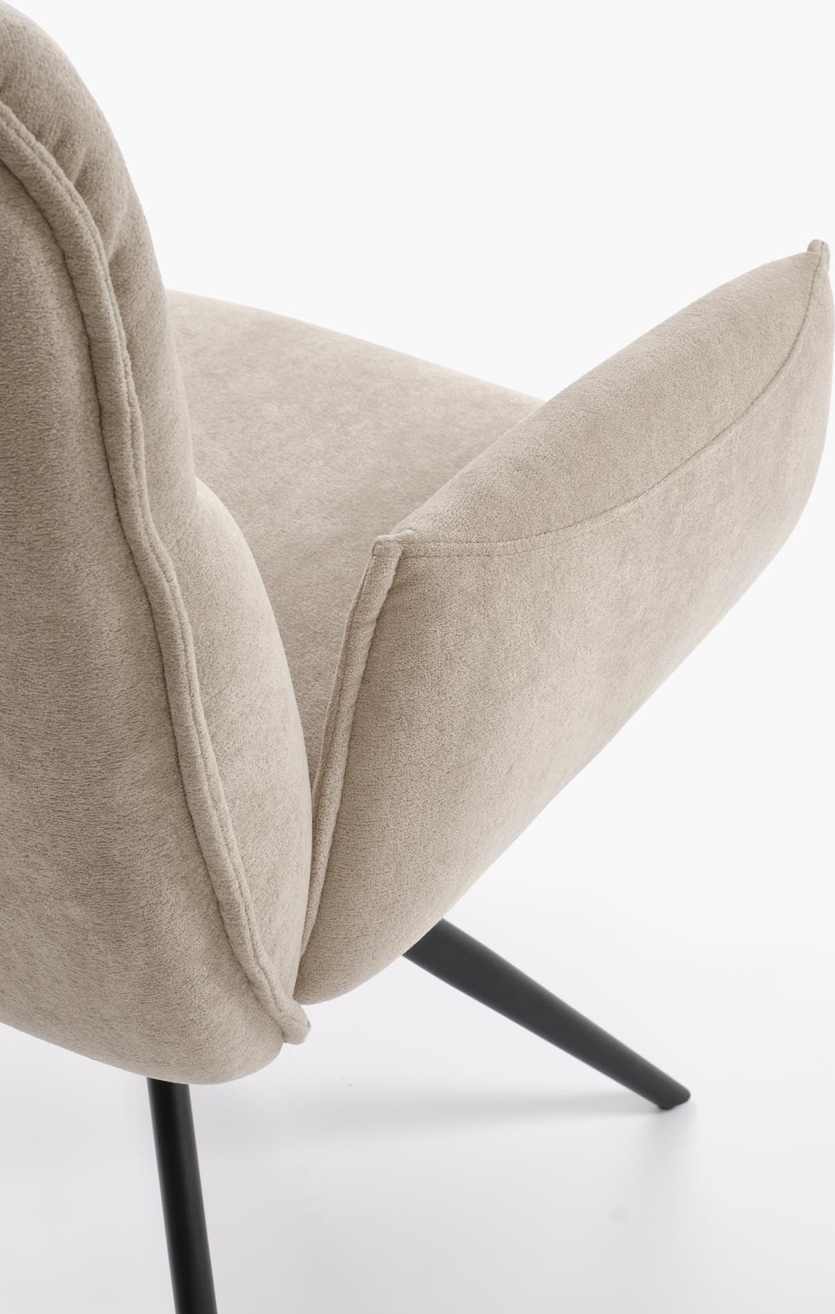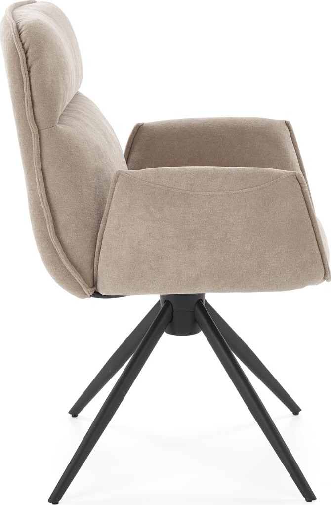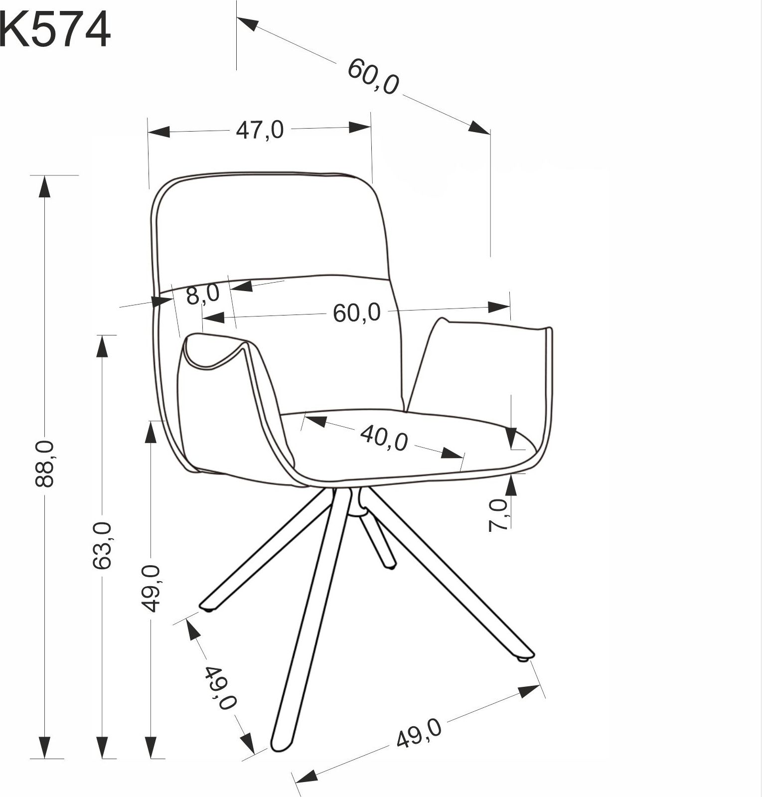 Jídelní židle K574 se skvěle hodí do moderních interiérů. Díky možnosti otočení o 180 stupňů se židle stává všestrannou a skvěle se hodí jak k pracovnímu nebo jídelnímu stolu, tak i na jiných místech, kde je vyžadována flexibilita. Použití vysoce kvalitní tkaniny zaručuje nejen odolnost, ale také snadné čištění. Černé kovové nohy navíc zdůrazňují moderní charakter židle. Kombinace kovu a odolné tkaniny zajišťuje nejen pevnost, ale také odolnost, která vám umožní těšit se z této židle po mnoho let.