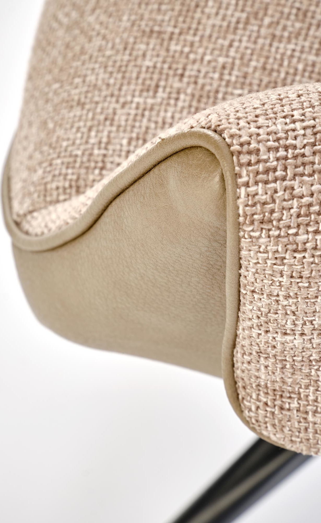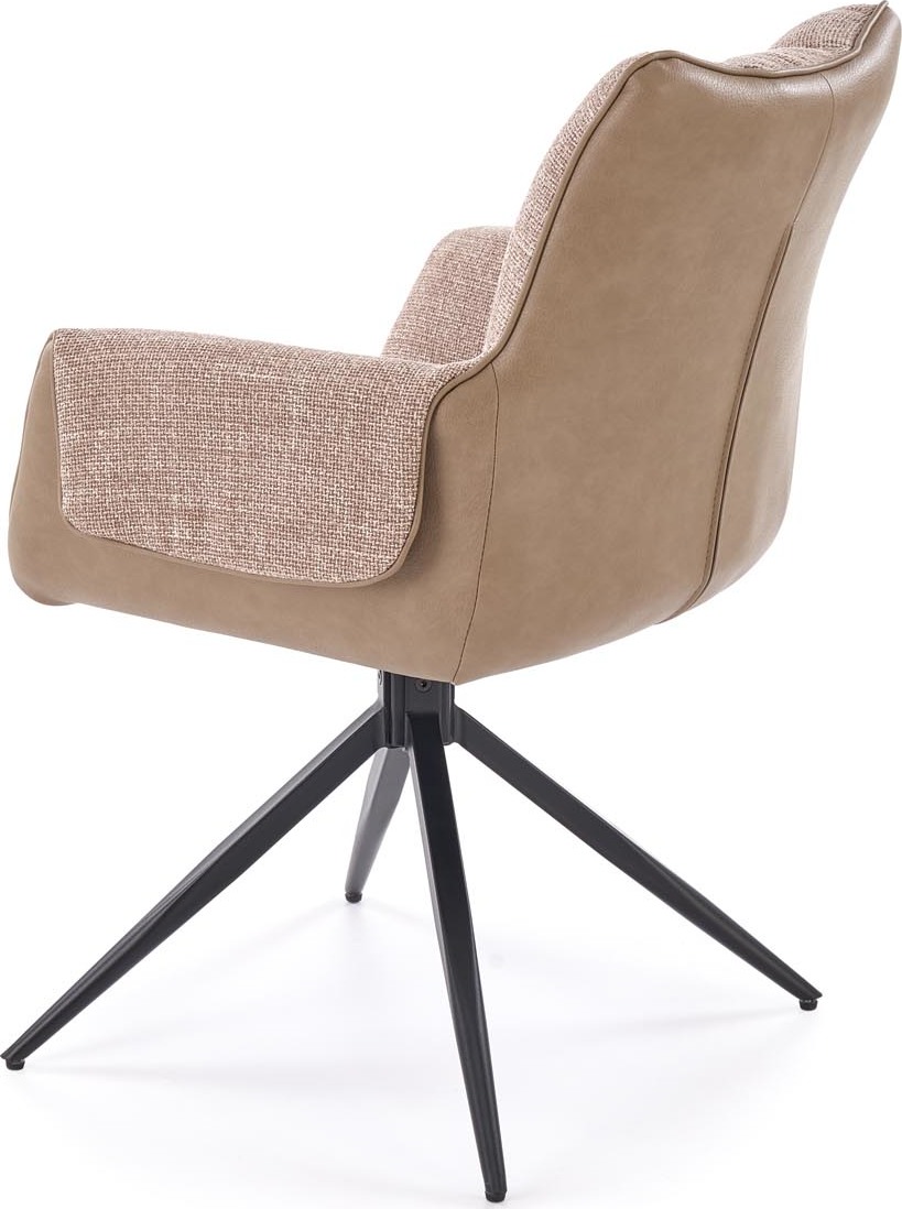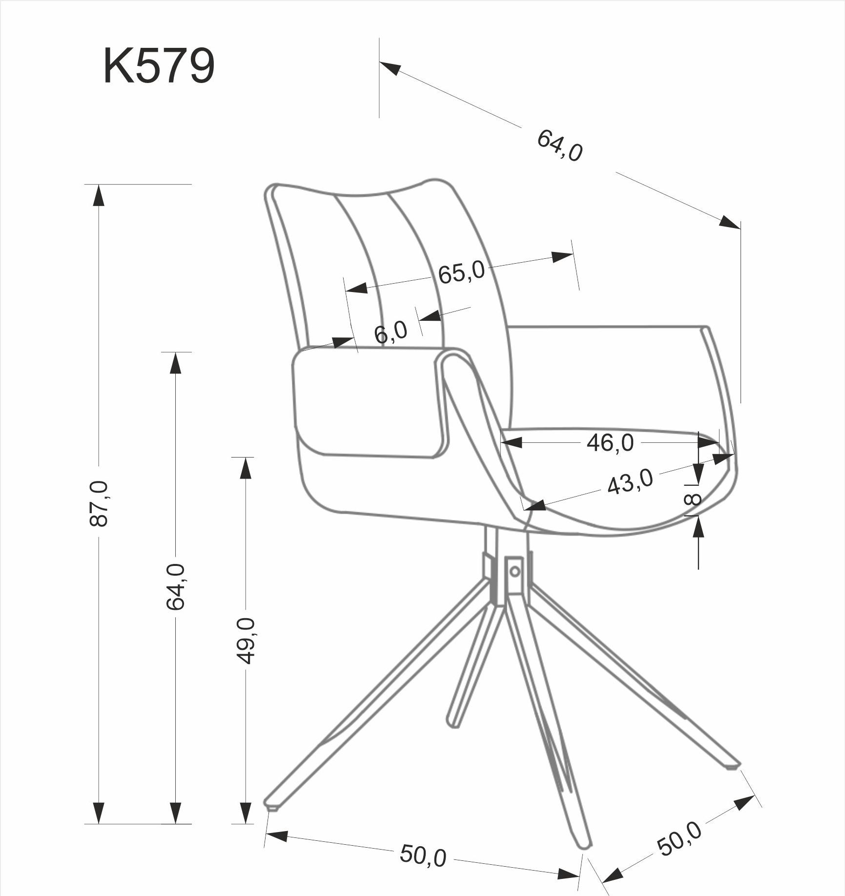 Jídelní židle K579 se skvěle hodí do moderních interiérů. Díky možnosti otočení o 180 stupňů se židle stává všestrannou a skvěle se hodí jak k pracovnímu nebo jídelnímu stolu, tak i na jiných místech, kde je vyžadována flexibilita. Použití vysoce kvalitní tkaniny na kontaktní ploše a umělé kůže na vnější straně zaručuje nejen odolnost, ale také snadné čištění. Černé kovové nohy navíc zdůrazňují moderní charakter židle. Kombinace kovu a odolné tkaniny zajišťuje nejen pevnost, ale také odolnost, která vám umožní těšit se z této židle po mnoho let.