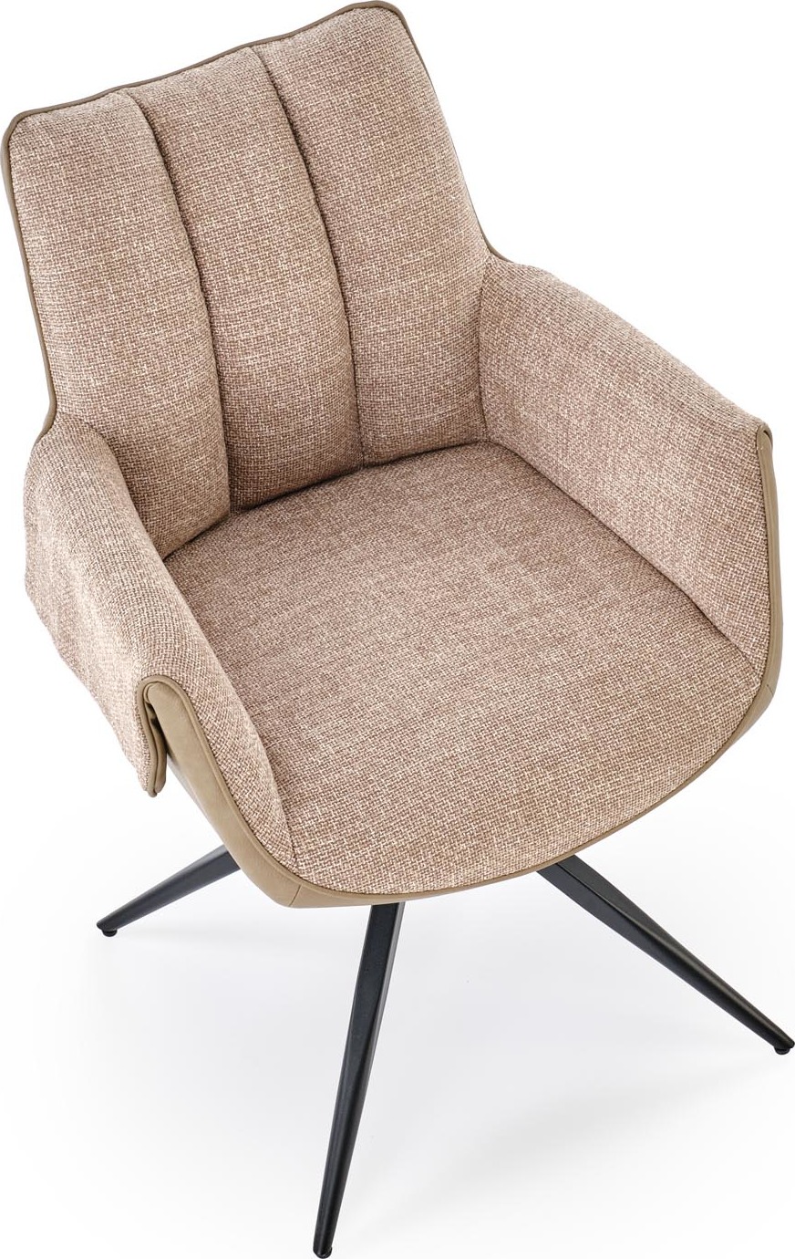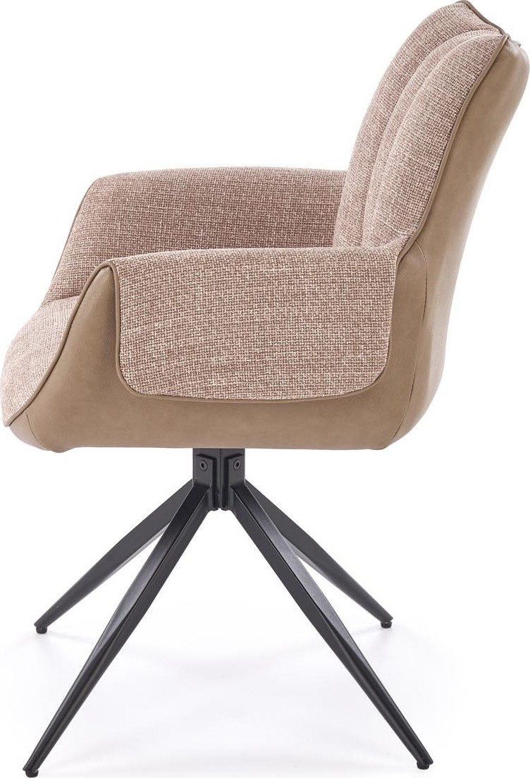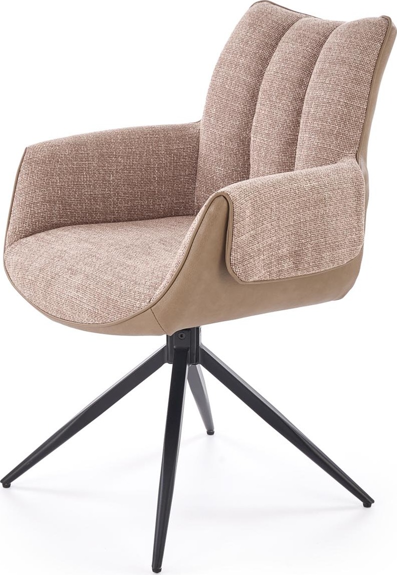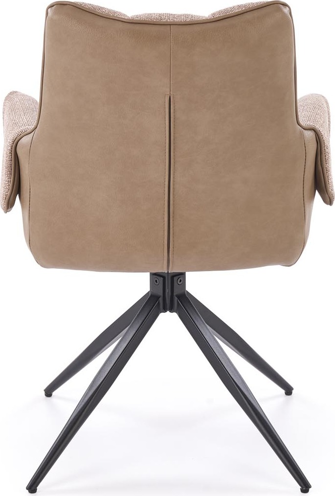 Jídelní židle K579 se skvěle hodí do moderních interiérů. Díky možnosti otočení o 180 stupňů se židle stává všestrannou a skvěle se hodí jak k pracovnímu nebo jídelnímu stolu, tak i na jiných místech, kde je vyžadována flexibilita. Použití vysoce kvalitní tkaniny na kontaktní ploše a umělé kůže na vnější straně zaručuje nejen odolnost, ale také snadné čištění. Černé kovové nohy navíc zdůrazňují moderní charakter židle. Kombinace kovu a odolné tkaniny zajišťuje nejen pevnost, ale také odolnost, která vám umožní těšit se z této židle po mnoho let.