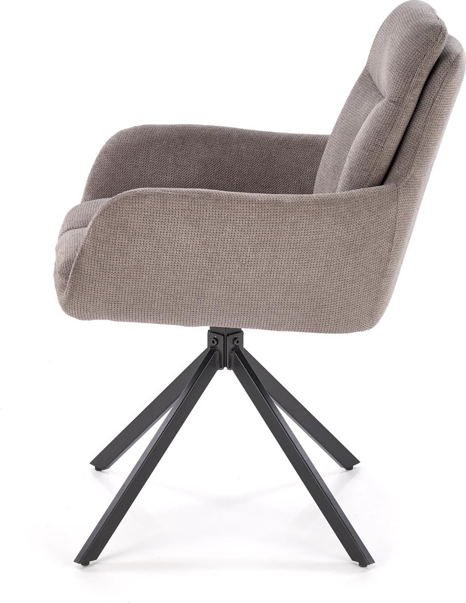 Jídelní křesílko AIDEN se skvěle hodí do moderních interiérů. Díky možnosti otočení o 360 stupňů se židle stává všestrannou a skvěle se hodí jak k pracovnímu nebo jídelnímu stolu, tak i na jiných místech, kde je vyžadována flexibilita. Použití vysoce kvalitní tkaniny zaručuje nejen odolnost, ale také snadné čištění. Černé kovové nohy navíc zdůrazňují moderní charakter židle. Kombinace kovu a odolné tkaniny zajišťuje nejen pevnost, ale také odolnost, která vám umožní těšit se z této židle po mnoho let.