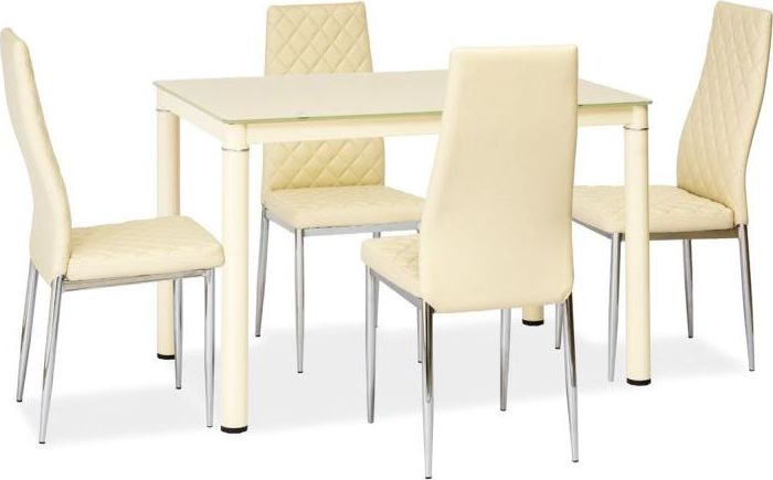 Jídelní stůl GALILEO představuje moderní a praktické řešení pro interiér Vaší kuchyně. Jeho elegantní a jednoduchý tvar spolu s pevnou konstrukcí a precizním zpracováním zaručují dlouhou životnost a spolehlivost. Krémová deska stolu vyrobená z tvrzeného skla je až pětkrát odolnější vůči nárazům než běžné sklo, což zajišťuje jeho vysokou odolnost. Rám stolu je vyroben z kovu, což dodává celkovému designu moderní vzhled a zároveň zaručuje dostatečnou stabilitu.