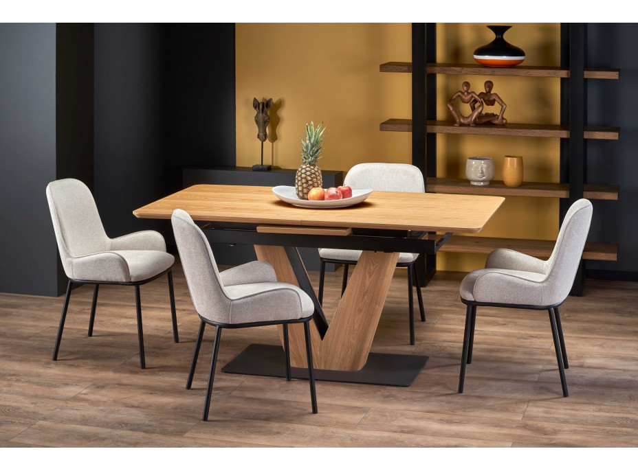Jídelní stůl MATTEO - 160(200)x90x77 cm - rozkládací - dub přírodní/černý