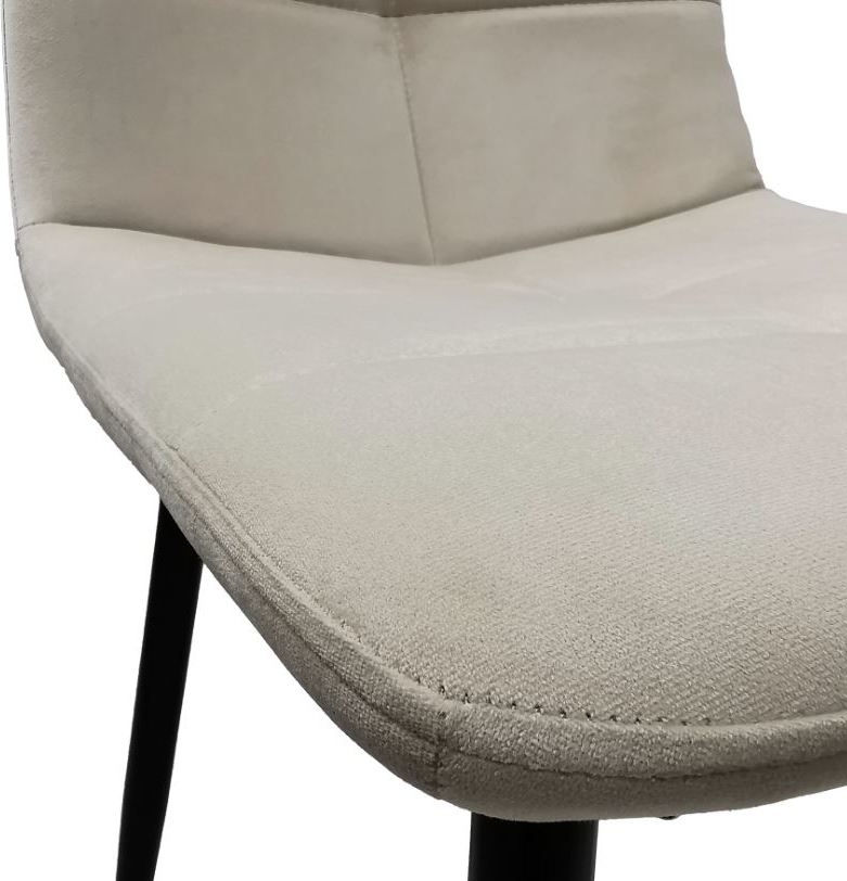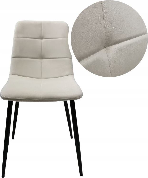 Moderní, stylová a univerzální židle, skvěle zapadne do každého aranžmá. Sedák vyplněný měkkou pěnou je čalouněný sametovou látkou, která je velmi příjemná na dotek. Židle je lehká a snadno se skladuje. Stabilní nohy jsou vyrobeny z práškově lakované oceli v černé barvě. Židle se díky svému designu a ozdobnému prošívání perfektně hodí do obývacího pokoje, kuchyně nebo jídelny.