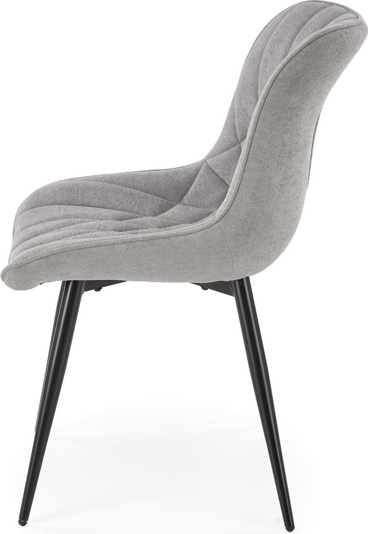 Jídelní židle K-567 je vynikajícím řešením pro lidi, kteří hledají moderní a elegantní doplňek do svého bytu. Židle je čalouněna jemnou a na dotek příjemnou látkou typu velvet. Díky tomuto druhu materiálu bude židle vypadat krásně v interiérech zařízených v elegantním, glamour stylu. Vzhledem k tomu, že její nohy jsou vyrobeny z oceli s černou práškovou barvou, bude tato židle perfektní i do bytů ve stylu loft. Kovový rám zaručuje vysokou odolnost nábytku a jeho stabilitu při používání. Dekorativní prošívání dodává židli jedinečný styl.