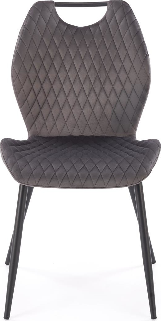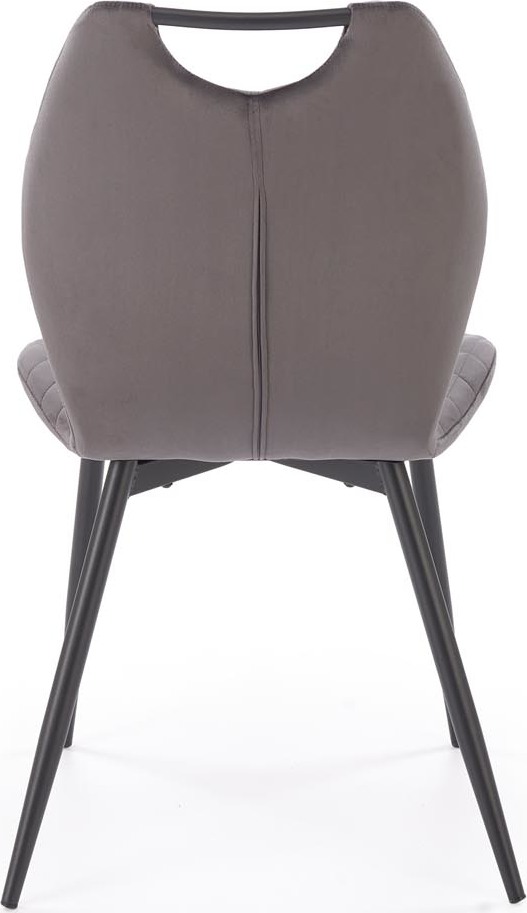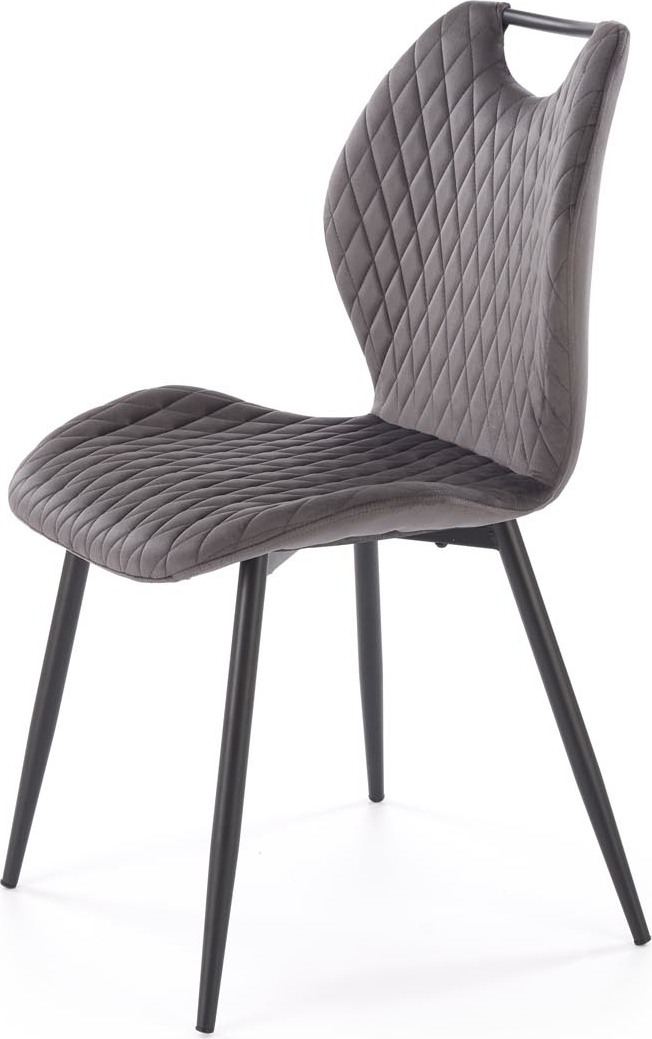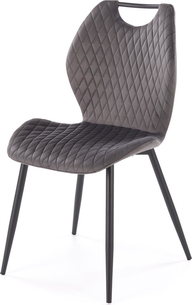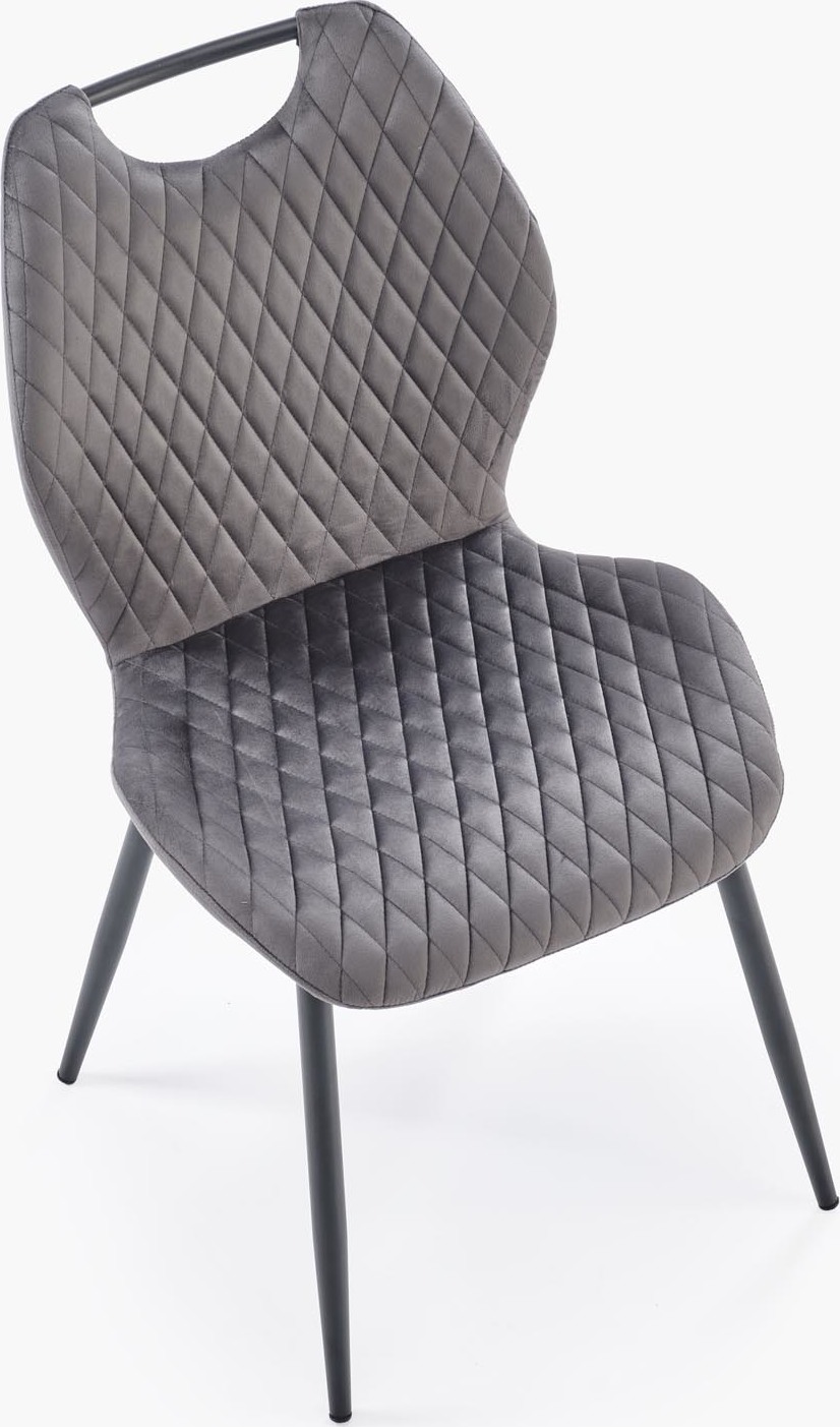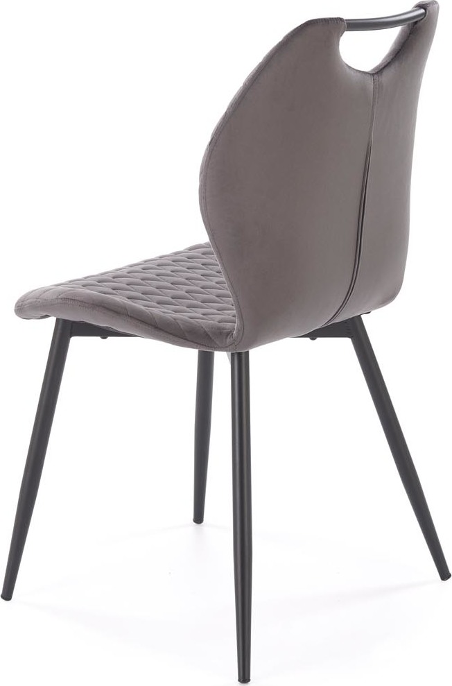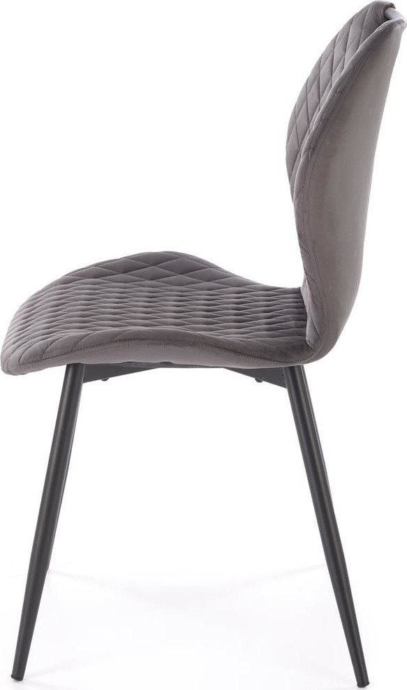 Jídelní židle K-569 je vynikajícím řešením pro lidi, kteří hledají moderní a elegantní doplňek do svého bytu. Židle je čalouněna jemnou a na dotek příjemnou látkou typu velvet. Díky tomuto druhu materiálu bude židle vypadat krásně v interiérech zařízených v elegantním, glamour stylu. Vzhledem k tomu, že její nohy jsou vyrobeny z oceli s černou práškovou barvou, bude tato židle perfektní i do bytů ve stylu loft. Kovový rám zaručuje vysokou odolnost nábytku a jeho stabilitu při používání. Dekorativní prošívání dodává židli jedinečný styl.