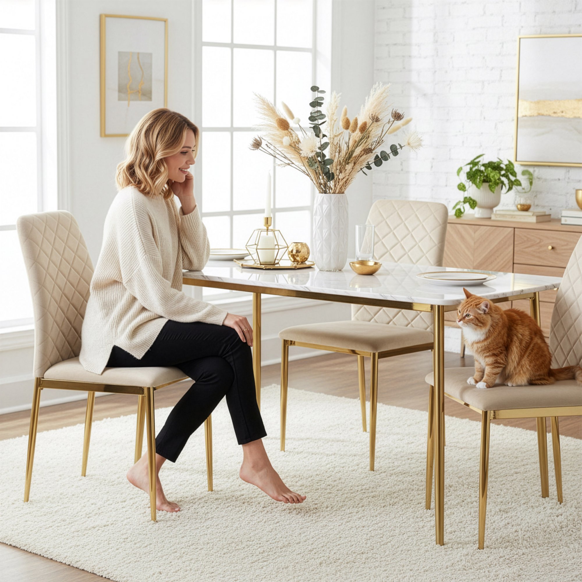 Jídelní židle MAVERIK Velvet - béžová/zlatá