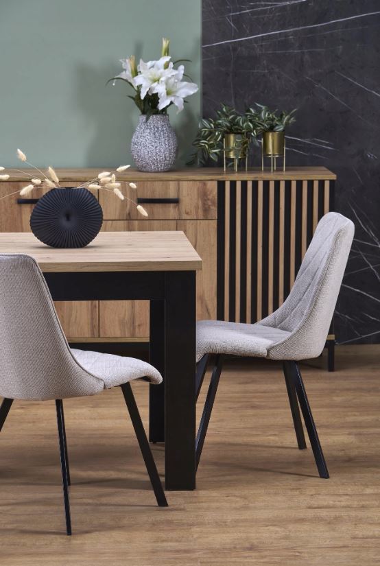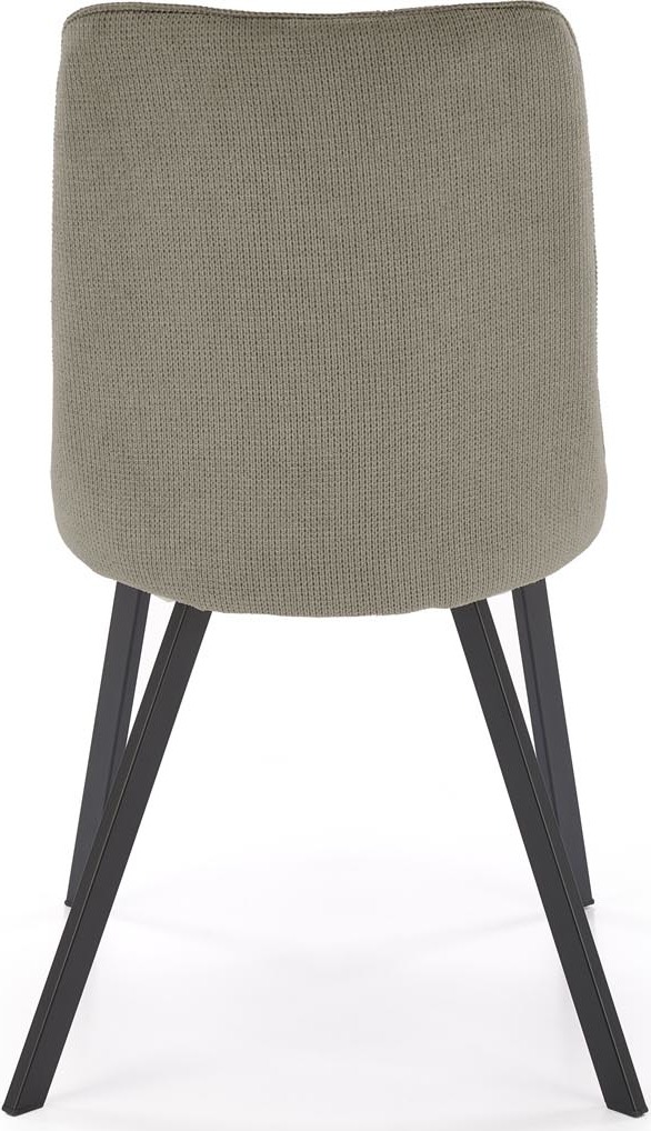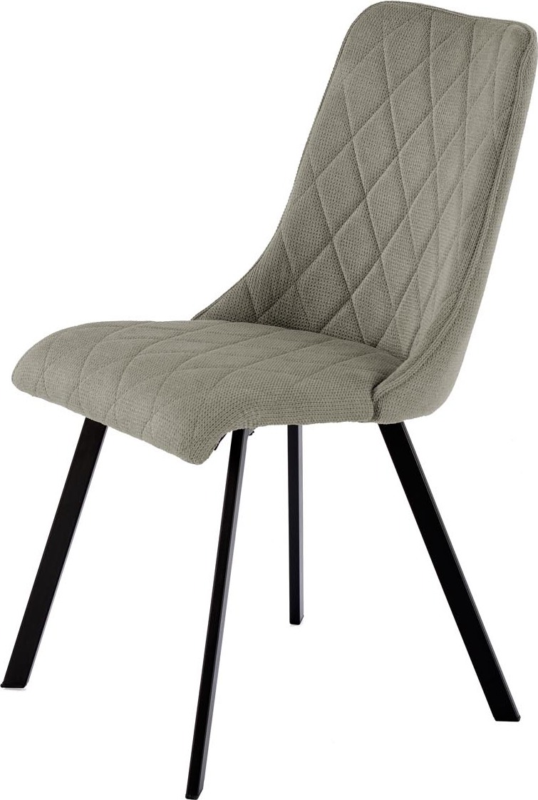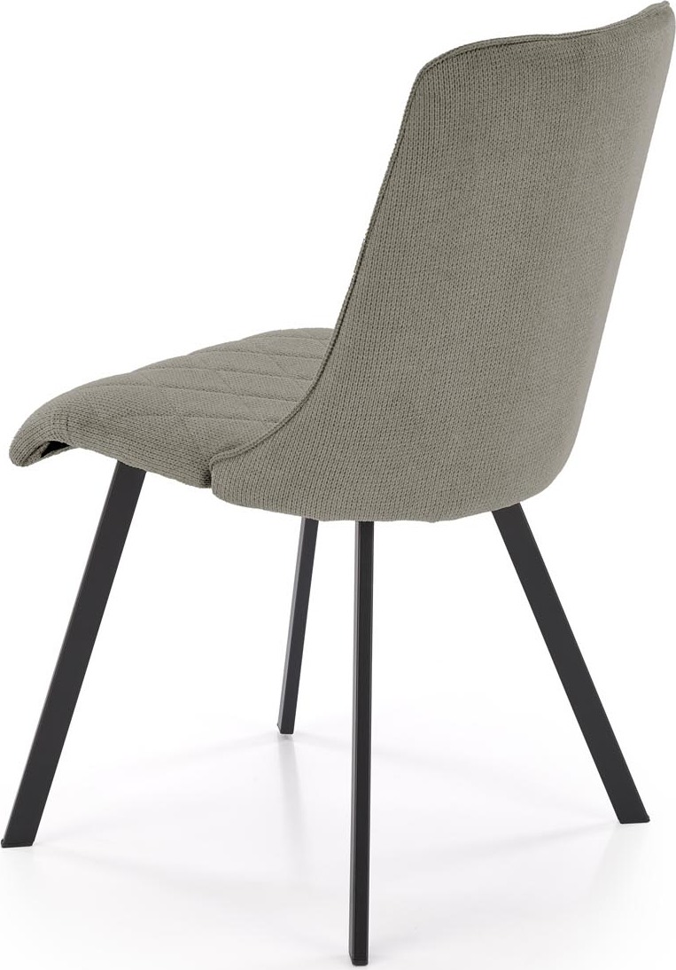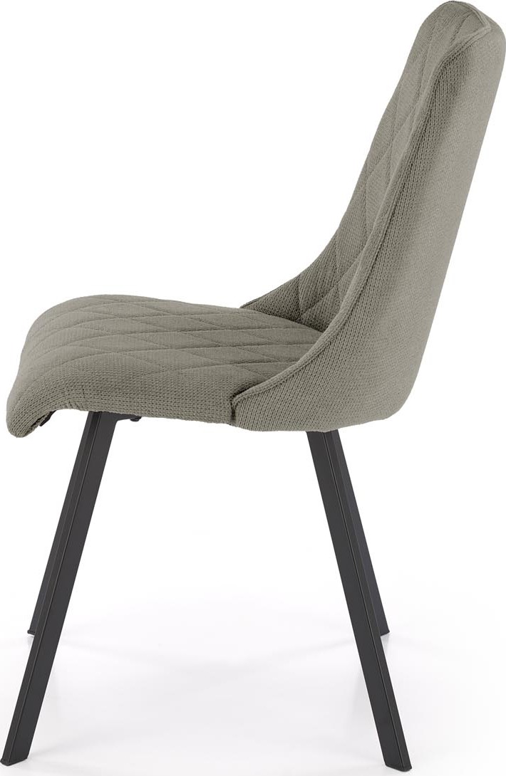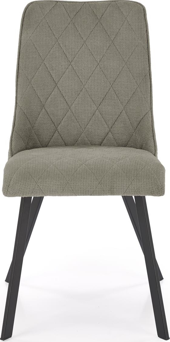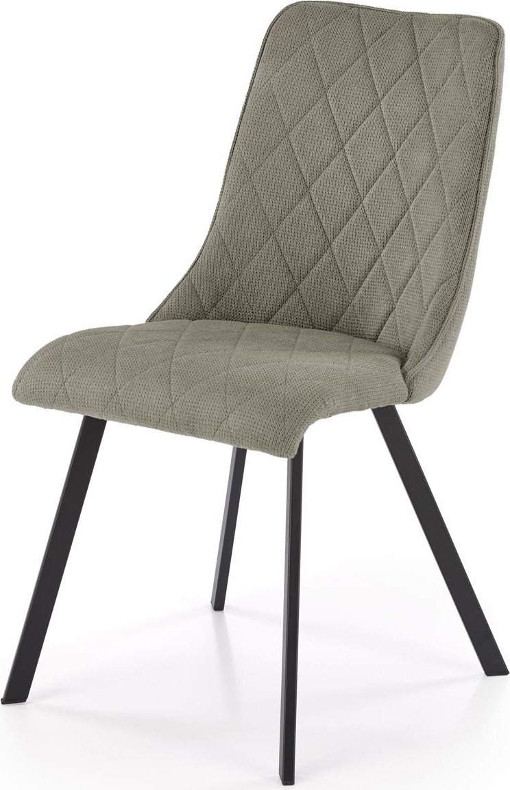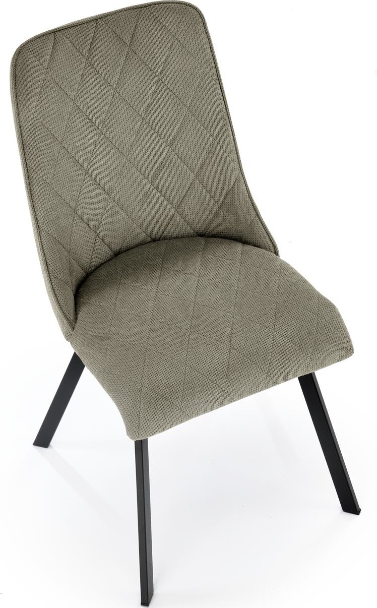 Jídelní židle VIOLET má pohodlný sedák a opěrák s ozdobným prošíváním, které dodávají nábytku jedinečný design. Povrch židle je čalouněný na dotek příjemnou látkou VARDO v olivově zelené barvě, nohy jsou vyrobeny z černé práškově lakované oceli, díky čemuž se nábytek skvěle hodí do loftových interiérů. Kovový rám zaručuje židli vysokou odolnost a stabilitu při používání. Takto konstruovaný nábytek jistě osloví lidi, kteří hledají elegantní a moderní řešení do svého bytu. Tvarovaná zádová opěrka zajišťuje maximální pohodlí.