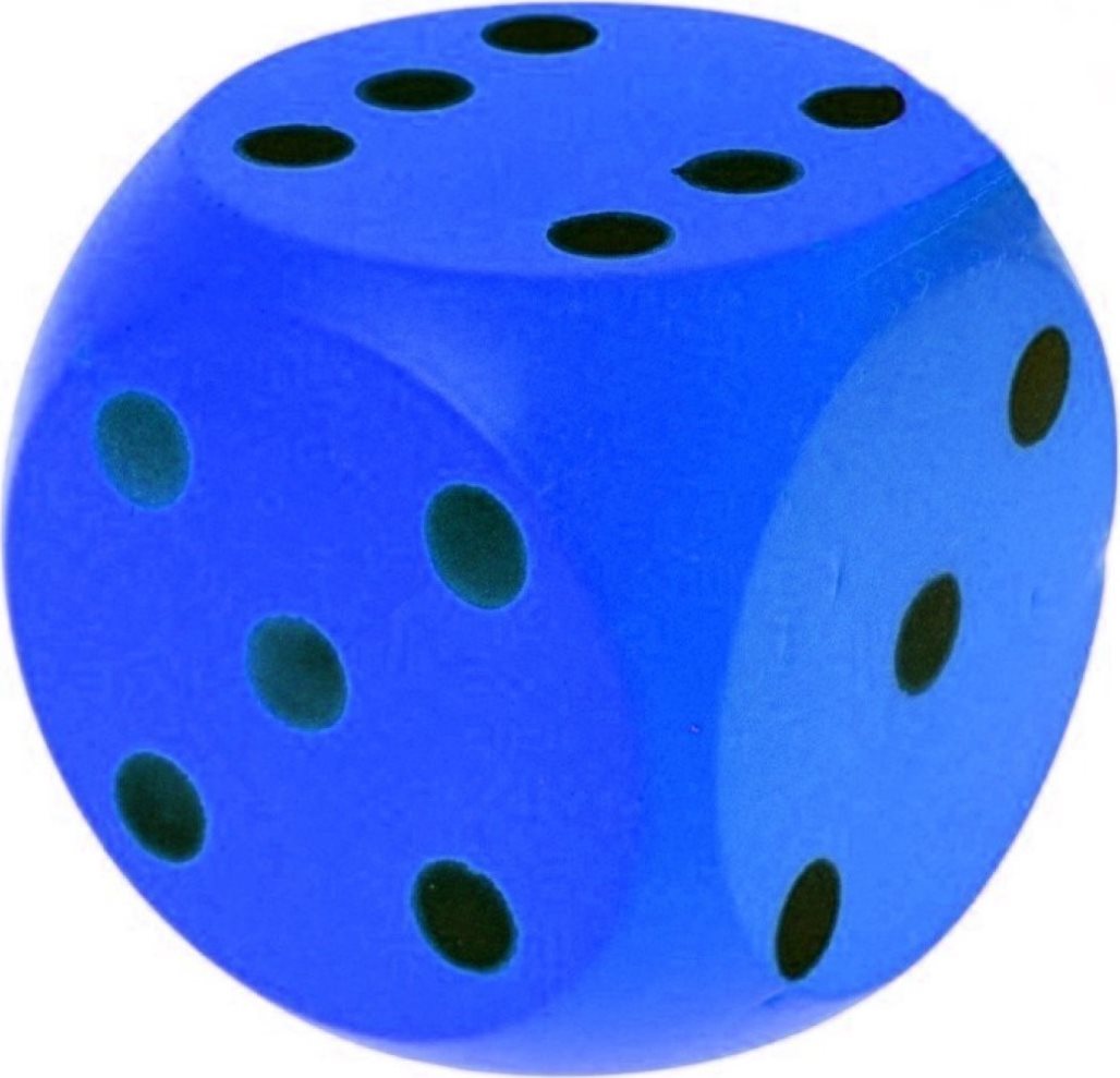 Měkká pěnová hrací kostka o velikosti 15 cm. Svým materiálem je podobná houbě na mytí. Můžeš si s ní házet nebo kutálet. Je vhodná pro různé společenské hry. Baleno v plastovém sáčku. Vhodné pro děti od 3 let.