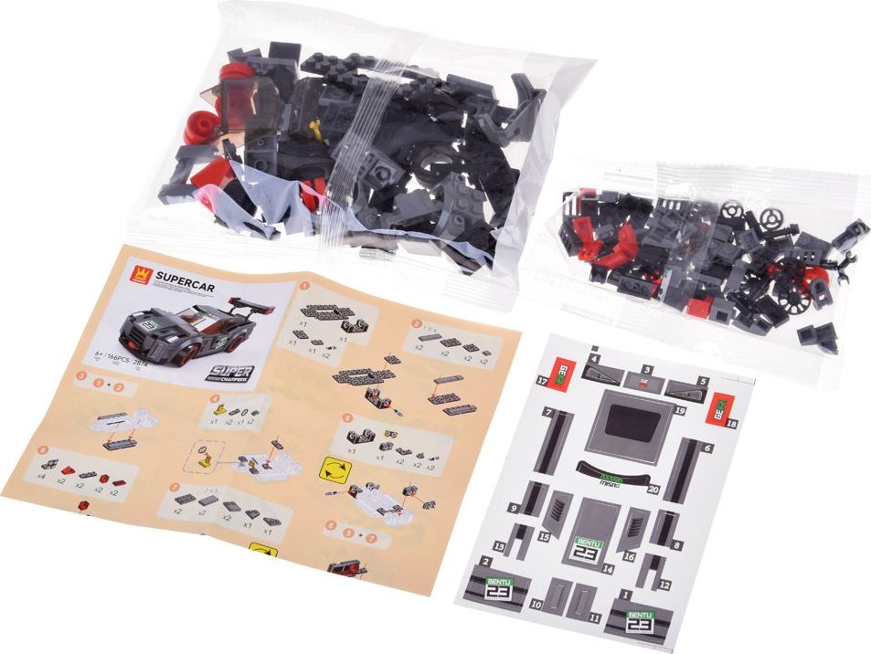 Technická stavebnice v šedém sportovním designu umožní dětem sestavit vlastní závodní auto. Díly se snadno spojují do stabilní konstrukce a díky samolepkám získá model ještě autentičtější vzhled. Při stavění se rozvíjí trpělivost, jemná motorika i kreativita.