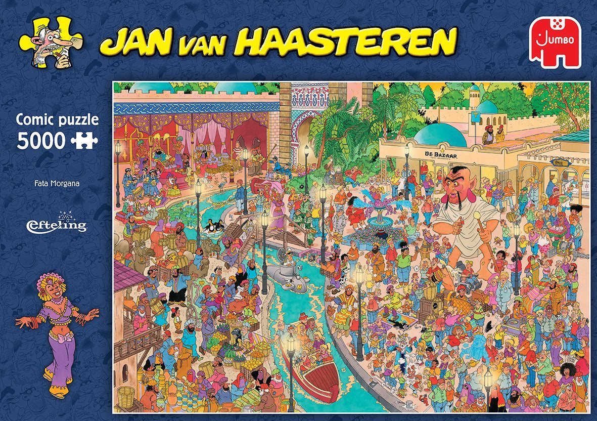 Skládání puzzle od Jana van Haasterena je velmi pestré a zábavné, prozkoumáte tak každý vtipný detail a zabavíte se na dlouhé chvíle. V souladu se svými tradicemi komponuje Jan van Haasteren do svých předloh svoji známou značku, kterou jako první jeho fanoušci hledají - žraločí ploutev a ruce, které vypadají, jako by nikomu nepatřily! A také mnoho dalších detailů, které naleznete na téměř všech jeho ilustracích - zubní protézu, Mikuláše a Haasterenův vlastní portrét. Velmi detailní, barevné a především vtipné ilustrace od autora jménem Jan Van Haasteren výhradně pro JUMBO. Jeho kresby mají výrazně rozeznatelný styl - vtipné obrázky, veselé situace a daleko více lidí, než byste očekávali! Puzzle z produkce Jan van Haasteren jsou po celém světě populární a doposud jich vytvořil více než 80.