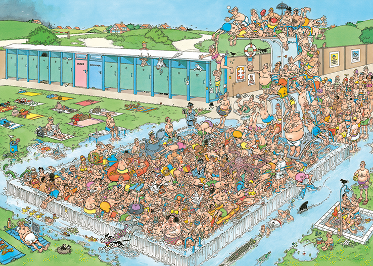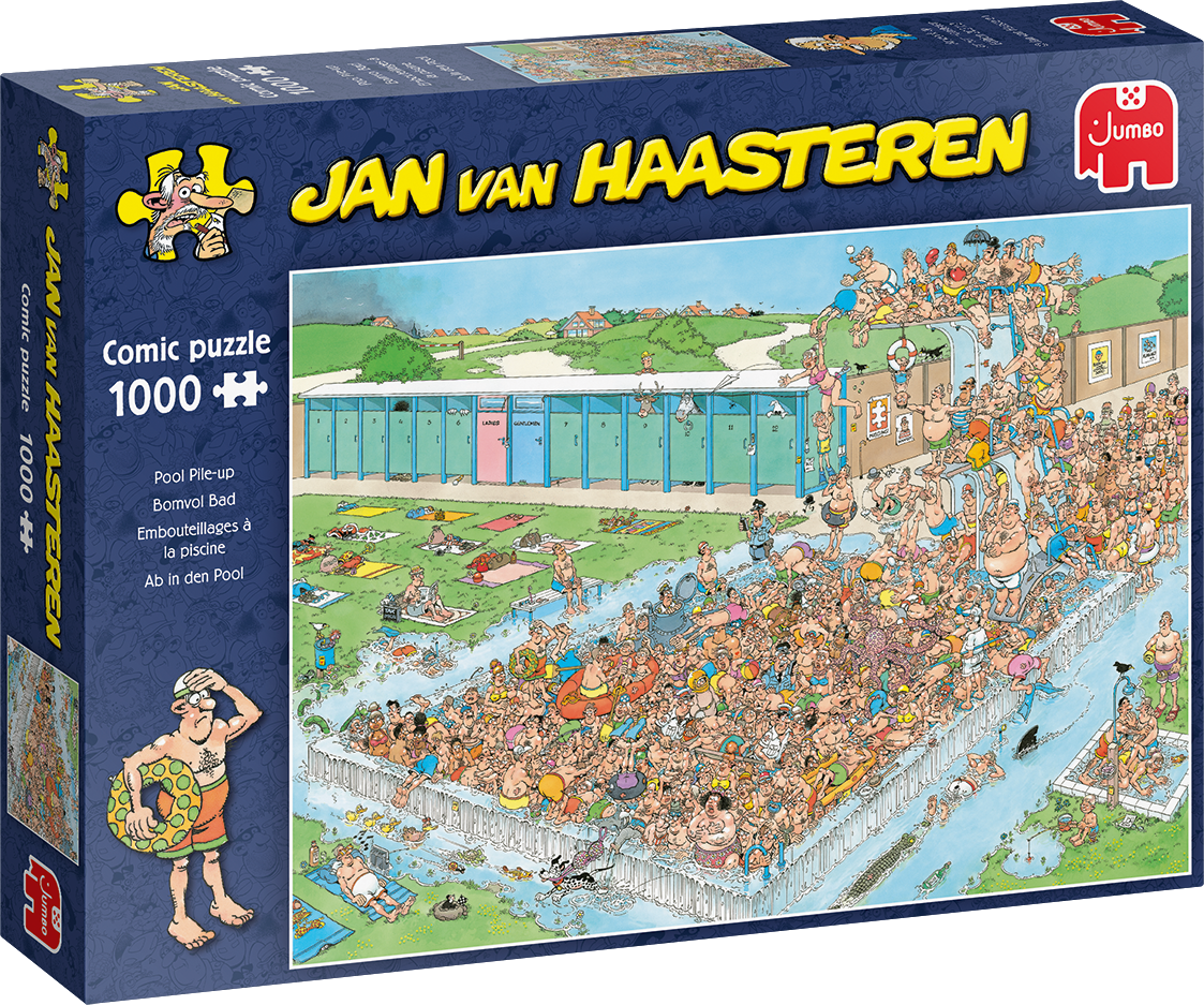 Skládání puzzle od Jana van Haasterena je velmi pestré a zábavné, prozkoumáte tak každý vtipný detail a zabavíte se na dlouhé chvíle. V souladu se svými tradicemi komponuje Jan van Haasteren do svých předloh svoji známou značku, kterou jako první jeho fanoušci hledají - žraločí ploutev a ruce, které vypadají, jako by nikomu nepatřily! A také mnoho dalších detailů, které naleznete na téměř všech jeho ilustracích - zubní protézu, Mikuláše a Haasterenův vlastní portrét. Velmi detailní, barevné a především vtipné ilustrace od autora jménem Jan Van Haasteren výhradně pro JUMBO. Jeho kresby mají výrazně rozeznatelný styl - vtipné obrázky, veselé situace a daleko více lidí, než byste očekávali! Puzzle z produkce Jan van Haasteren jsou po celém světě populární a doposud jich vytvořil více než 80.
