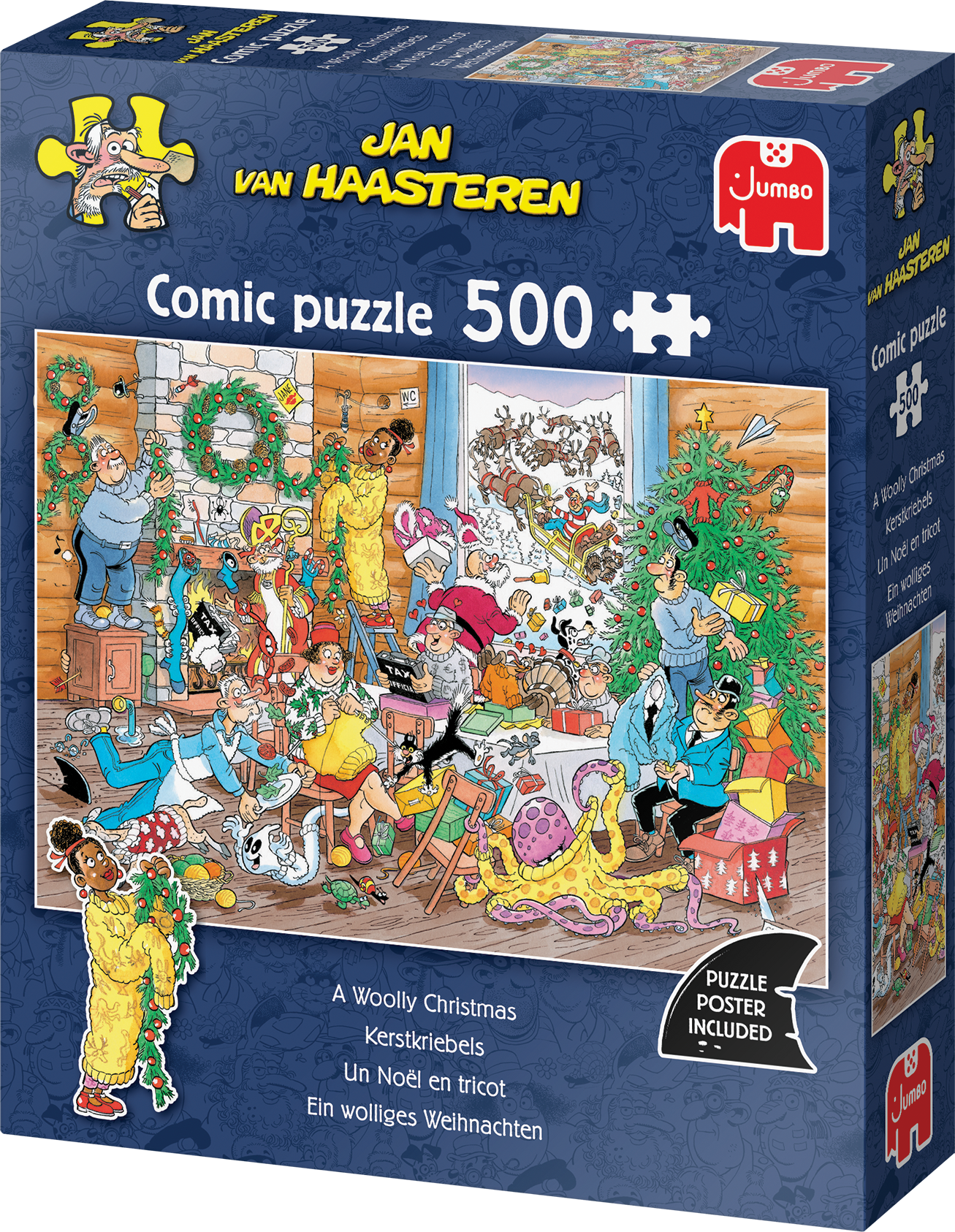 Skládání puzzle od Jana van Haasterena je velmi pestré a zábavné, prozkoumáte tak každý vtipný detail a zabavíte se na dlouhé chvíle. V souladu se svými tradicemi komponuje Jan van Haasteren do svých předloh svoji známou značku, kterou jako první jeho fanoušci hledají - žraločí ploutev a ruce, které vypadají, jako by nikomu nepatřily! A také mnoho dalších detailů, které naleznete na téměř všech jeho ilustracích - zubní protézu, Mikuláše a Haasterenův vlastní portrét. Velmi detailní, barevné a především vtipné ilustrace od autora jménem Jan Van Haasteren výhradně pro JUMBO. Jeho kresby mají výrazně rozeznatelný styl - vtipné obrázky, veselé situace a daleko více lidí, než byste očekávali! Puzzle z produkce Jan van Haasteren jsou po celém světě populární a doposud jich vytvořil více než 80. Ilustrační video Rozměr složeného puzzle cca 49 x 35 cmVlastnosti