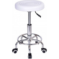 Kadeřnická kolečková židle bez opěradla s potahem z ekologické kůže. Perfektní pro moderní kuchyně, kadeřnické salony a informační místa.