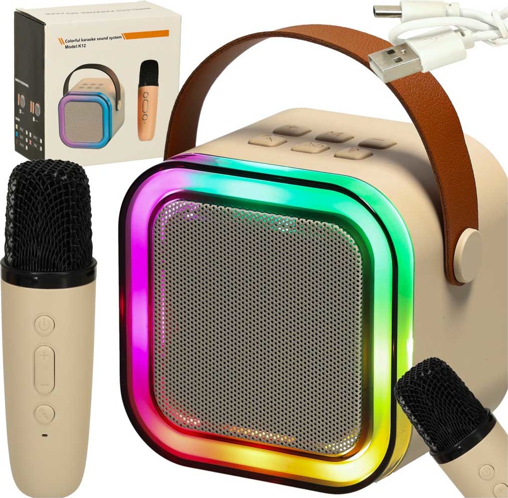 Tato béžová karaoke sada, která se skládá z reproduktoru a mikrofonu, umožňuje dětem procvičovat si hudební dovednosti. Reproduktor napájený z baterií disponuje funkcí RGB s pěti režimy osvětlení, které zvyšují zábavu. Mikrofon je také napájen z baterie, což zajišťuje pohodlí a přenosnost během vystoupení.