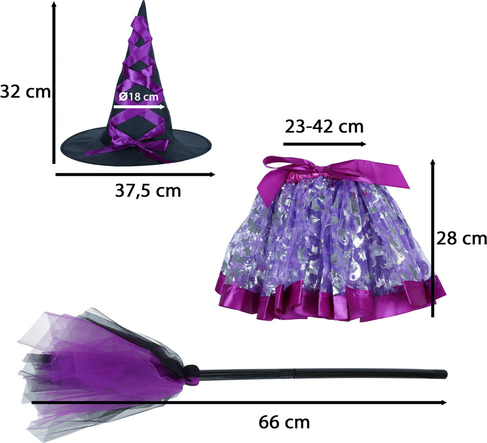 Karnevalový kostým Čarodějnice - 3 kusy - fialový
