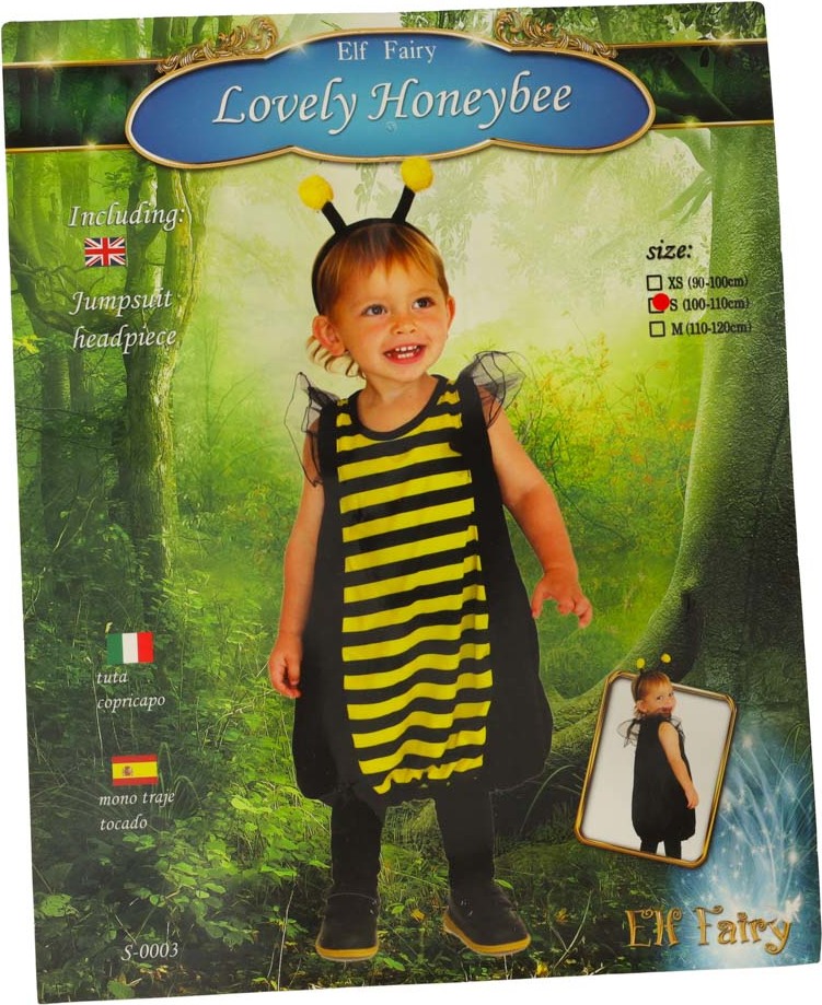 Tento kostým včelky je ideální pro kostýmní večírky, Halloween nebo tematické večírky. Sada obsahuje černobílý pruhovaný overal s tylovými rukávy a čelenku s tykadly. Kostým je určen pro děti s výškou 100-110 cm.