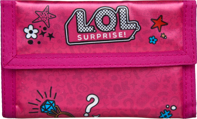 Klasická dětská peněženka s motivem L.O.L. Peněženka má zavírání na suchý zip s vnitřními přihrádkami, dále pak přihrádku na drobné mince se zavíráním na klasický zip.