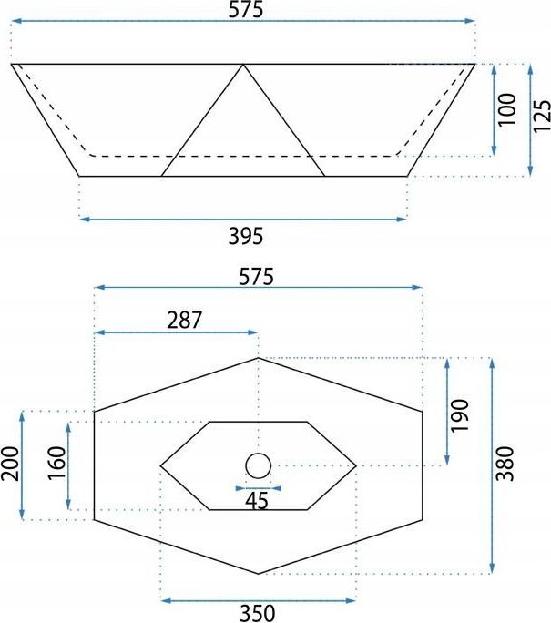 - Rozměr umyvadla: 575 x 380 x 125 mm