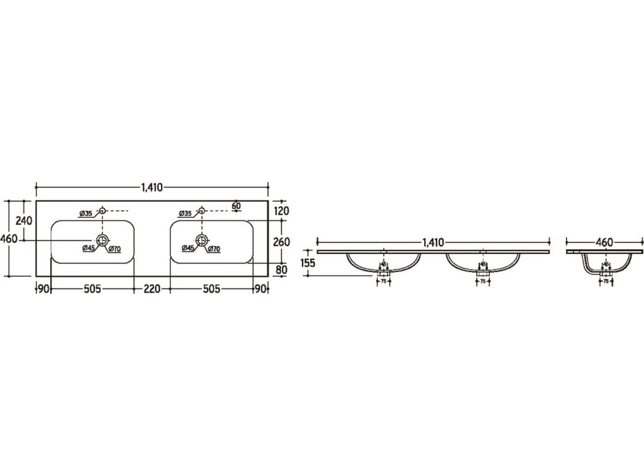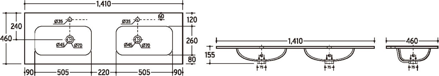 Keramické umyvadlo FLY Double 140 cm DP - bílé