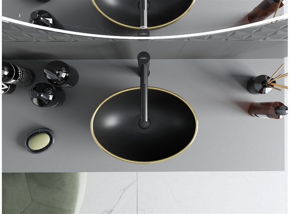 Keramické umyvadlo s glazurou v černé matné barvě se vzorem v zlaté lesklé barvě přináší originální a jedinečný vzhled do Vaší koupelny. Keramická umyvadla se velmi dobře udržují - vodní kámen či rez je nijak neovlivňují. Keramika je navíc pevný a stálý materiál odolný vůči změně barvy.
