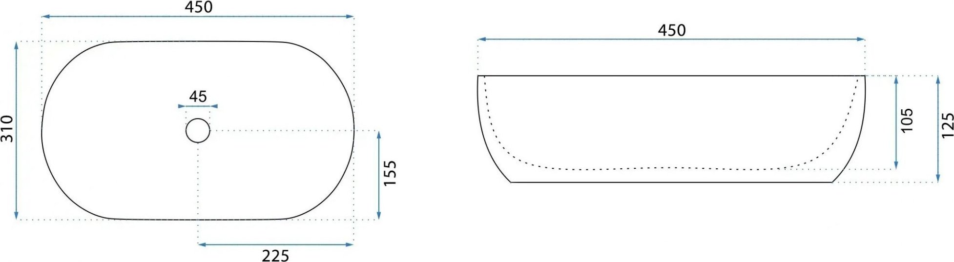 - Rozměr umyvadla: 450 x 310 x 125 mm