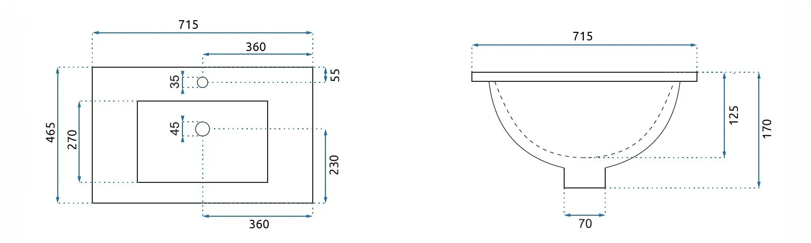 Zápustné umyvadlo do desky nebo skříňky kolekce Dafne je vybaveno otvorem na baterii a přepadovým otvorem pro odtok vody. Designem je vhodné do každé moderní koupelny. Čistý vzhled s rovnými linkami odpovídá moderním trendům a sanitární keramika s bílou glazurou se zaručují o dlouhou životnost a snadnou údržbu.