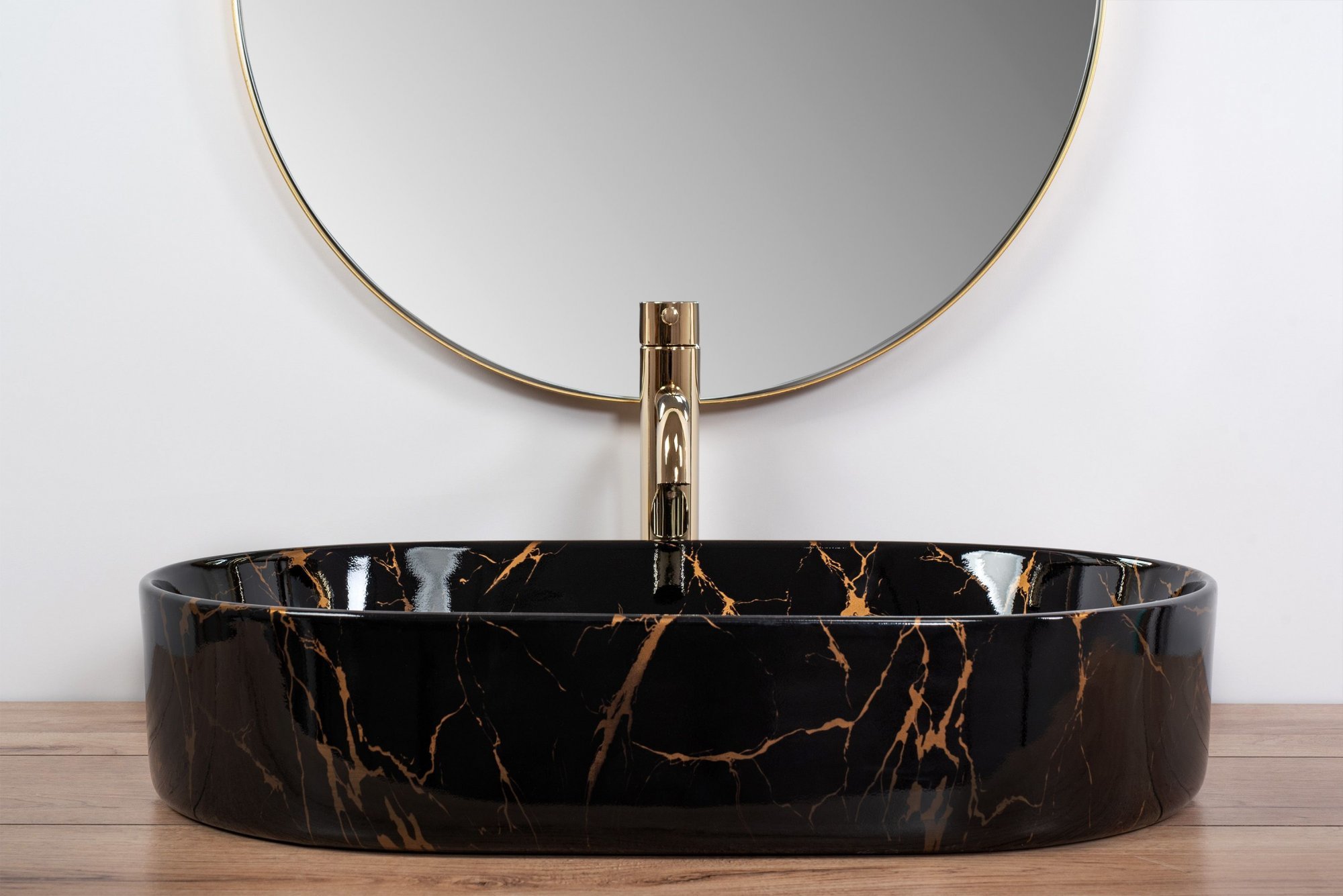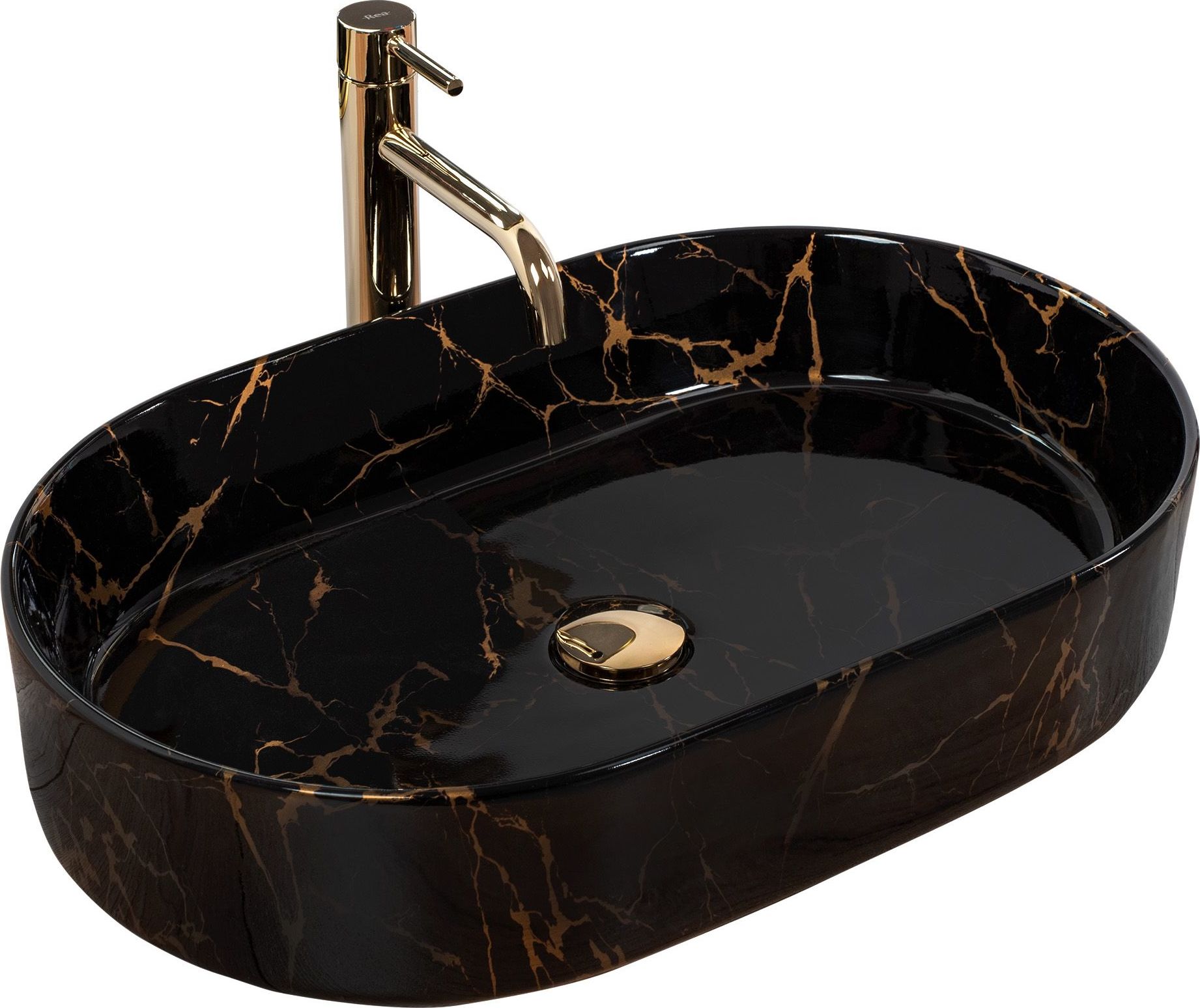 Keramické umyvadlo Rea NADIA 61 BLACK MARBLE SHINY - dekor kamene - černé