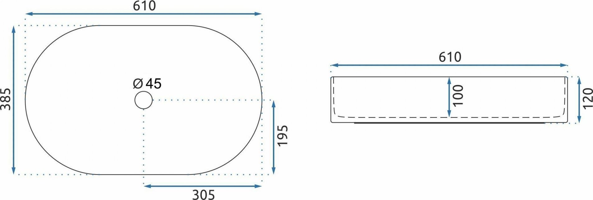 - Rozměr umyvadla: 610 x 385 x 120 mm