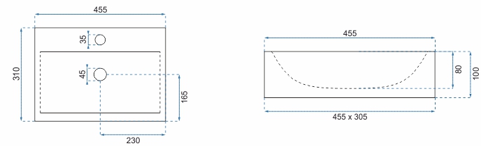 - Rozměr umyvadla: 455 x 310 x 100 mm