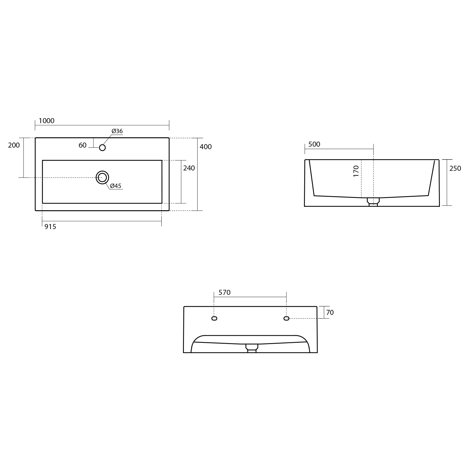 Kerasan KANAAL keramické umyvadlo 100x40cm, bílá 574301