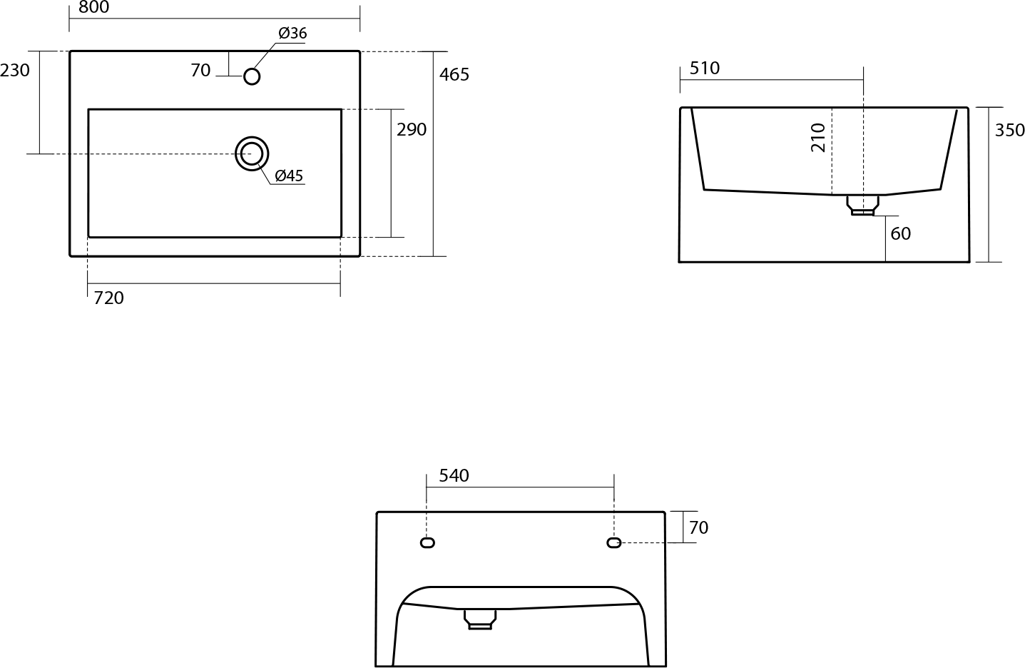 Kerasan KANAAL keramické umyvadlo 80x46, 5cm, bílá 574101