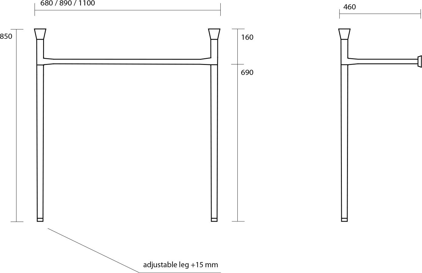 Kerasan THE NEW YORKER konstrukce pro umyvadlo 100cm, černá mat 927631