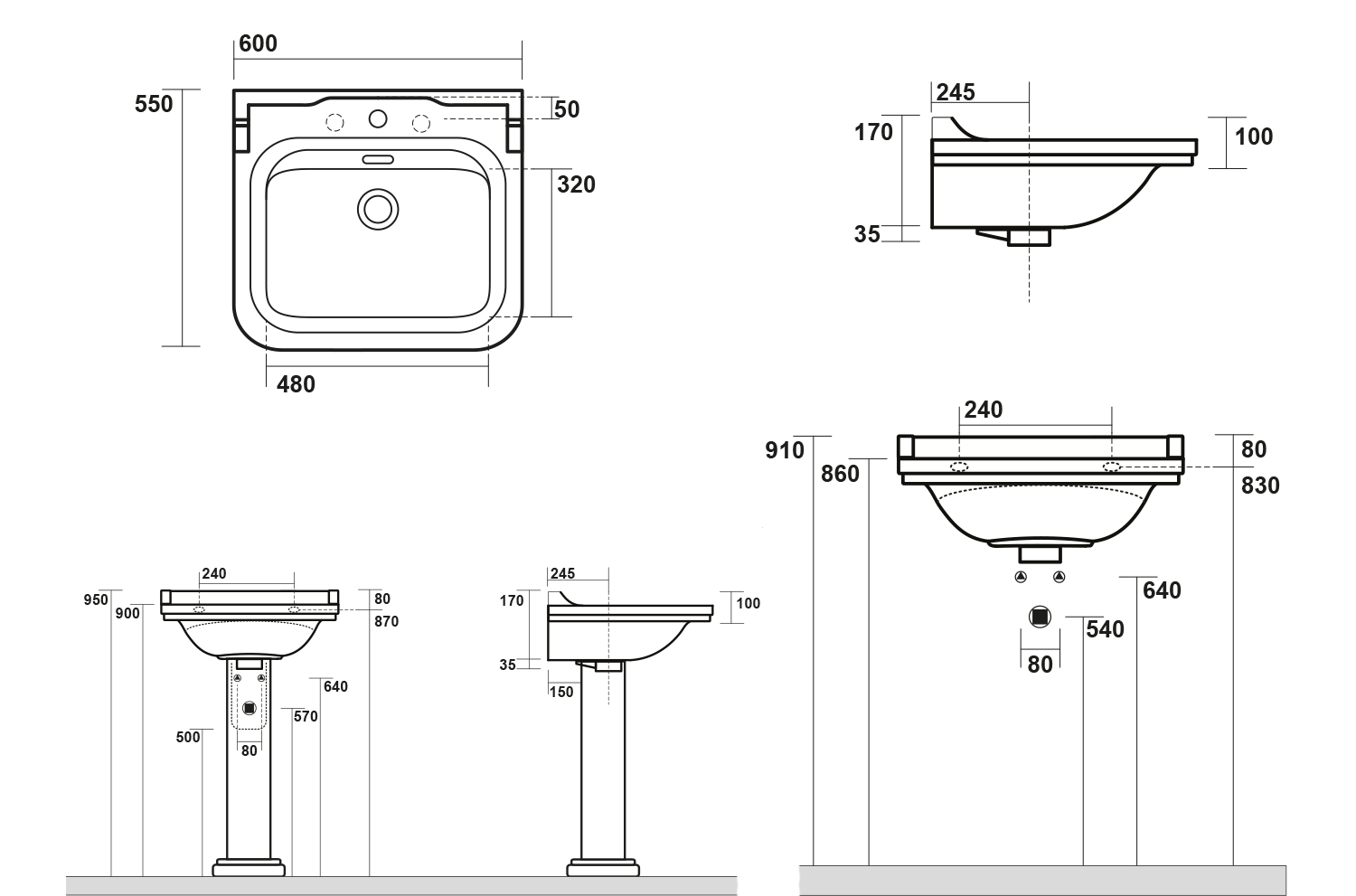 Kerasan WALDORF keramické umyvadlo 60x55cm, bílá 4140K1