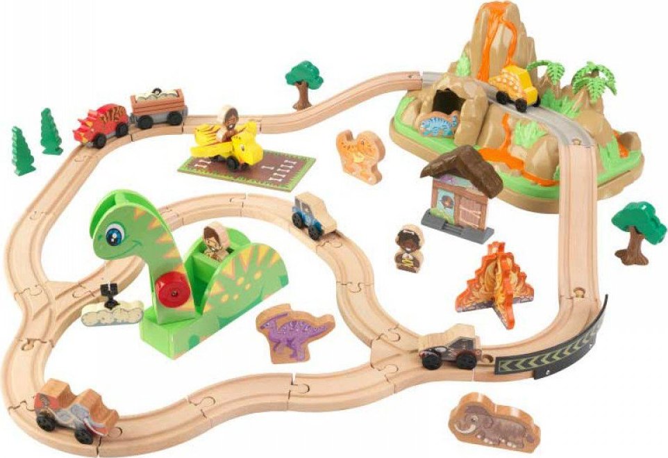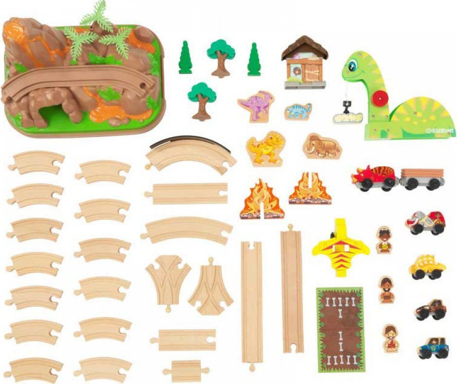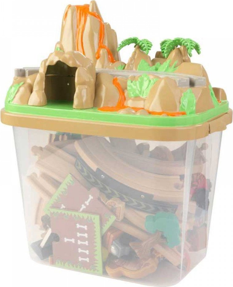 Dřevěná vláčkodráha s motivem pravěkých dinosaurů! Dřevěná dráha s vláčky od KidKraftu patří do každého dětského pokoje. Sada obsahuje 56 dílků a je vyrobena z kvalitního dřeva. Součástí vláčkodráhy je i pohyblivý jeřáb ve tvaru dinosaura s dinosauřím letadlem a dalšími krásně malovanými doplňky. Sada je balena v plastovém boxu jehož víko vypadá jako pravěké horské kopce a lze ho použít jako zajímavá součást vláčkodráhy. Rozměry: 38 x 32 x 22 cm Vhodné pro děti od 3 let.Vlastnosti
