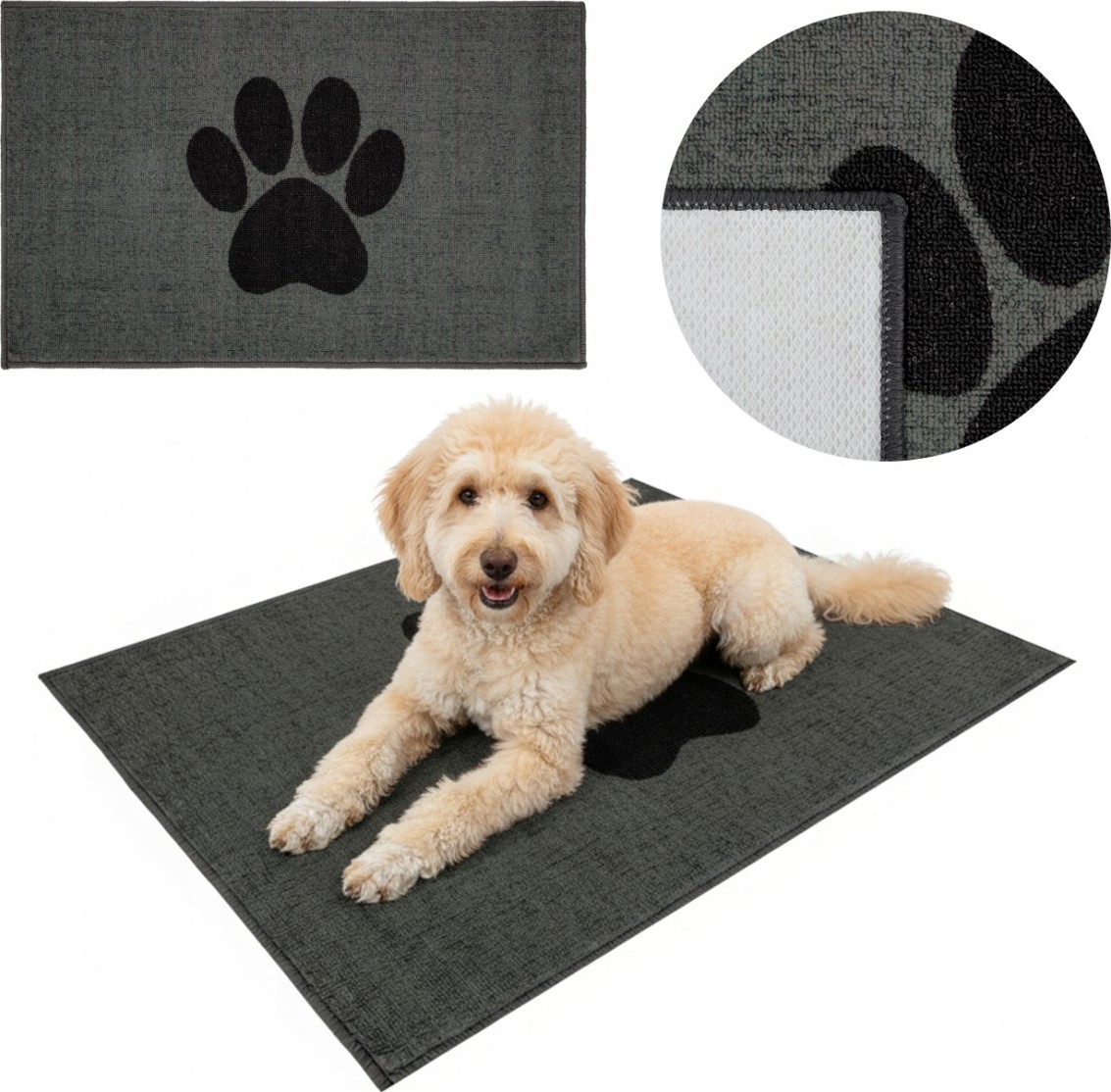 Podložka Pupil Pad je jedinečný kobereček pro vašeho psa nebo kočku, ohromující jak vzhledem, tak i praktičností. Vyrobena z měkké látky s krátkým vlasem a příjemnou texturou, poskytuje vašemu mazlíčkovi pohodlné místo k odpočinku a zároveň udržuje váš domov čistý. Díky pogumované spodní straně podložka neklouže a zůstává stabilní i při intenzivním používání. Její módní potisk tlapky a tlumené šedé barevné provedení z ní činí perfektní doplněk do jakéhokoli interiéru. Savá podložka Pupil Pad magicky absorbuje vodu, nečistoty a bláto, čímž zajišťuje, že veškerý nepořádek zůstane na podložce a vaše podlahy zůstanou čisté a suché!